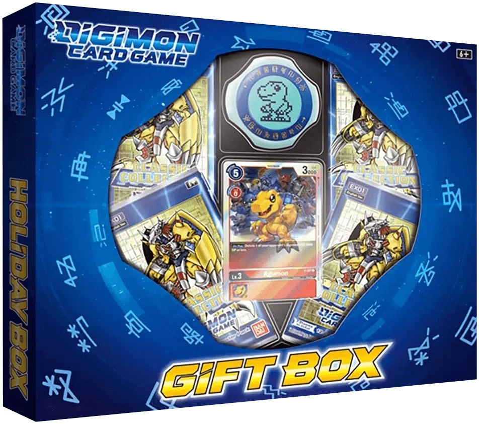 A must-have GIFT BOX with four Classic Collection booster packs, an exclusive memory counter, and an alternate-art WarGreymon promo card!