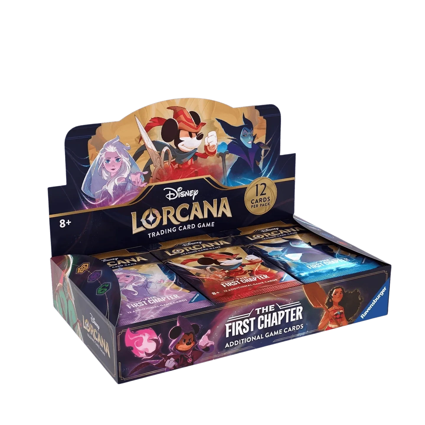 Lorcana TCG Booster Boxes contain 24 Booster Packs. Each booster pack contain twelve random cards from Disney Lorcana: The First Chapter. Use booster packs to build and customize your deck with abilities and characters beyond those found in starter decks.