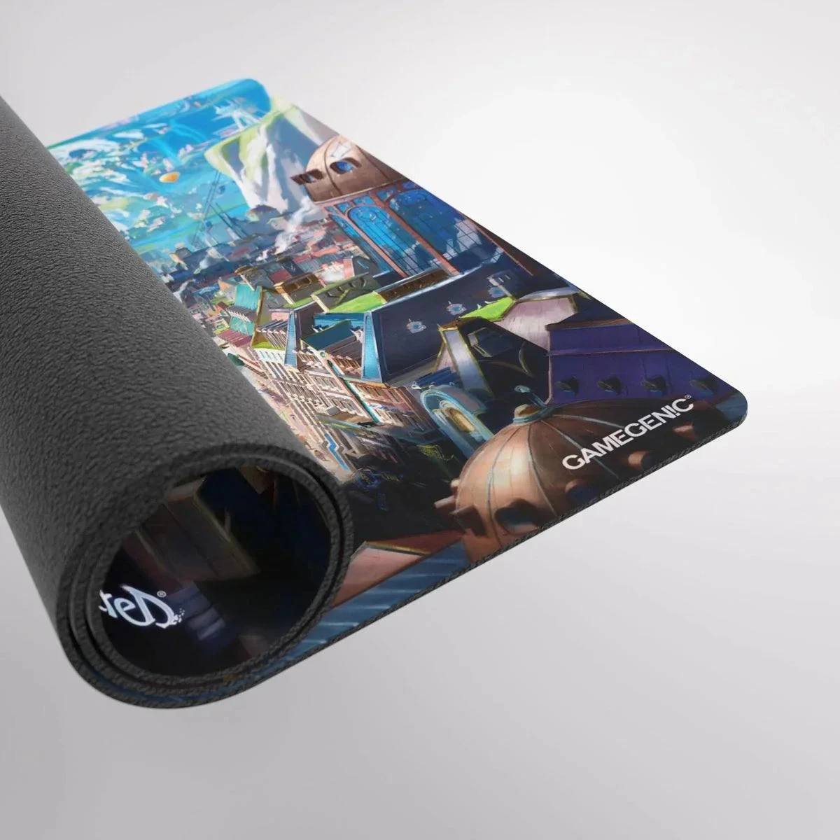 This premium quality, full color printed, and officially licensed Altered® Prime Playmat is a must-have accessory for every passionate gamer! Available in three premium-quality prints of astonishing art, it brings the exciting atmosphere of Altered® right to the gaming table. The Prime Playmat enriches the game and perfectly complements every round played! The softly cushioned playmat is 2mm thick and protects playing cards from rough or dirty surfaces. Each mat is outfitted with an ultrafine surface and an anti-slip back side that keeps it safely in place during gameplay. The fascinating design, the comfortable feel, and soft material are ideal for an upgraded gaming experience or a home desktop. The Playmat is perfect for all enthusiastic fans of Altered® as well as players of TCGs, LCGs and a vast variety of games alike.
