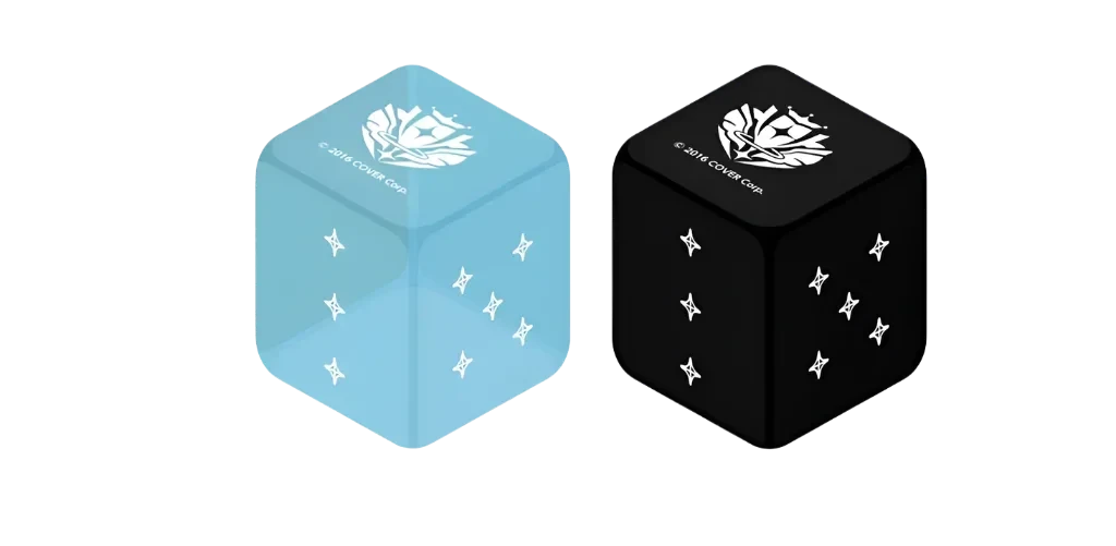 A set of 2 six-faced cube dice used in-game.