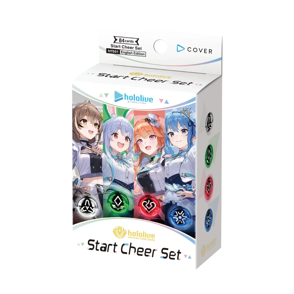 Oshi holomem and Cheer Cards to build your deck now come in a set! Comes with 20 Cheer Cards each in white, green, red, and blue!