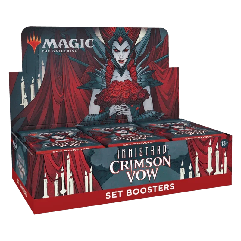 Crimson Vow continues the new Innistrad storyline begun in Innistrad: Midnight Hunt. As humanity turned to the hope of rituals and a Harvesttide festival to save them from the Eternal Night in Midnight Hunt, those that stalk from shadows aren’t just the mindless zombies and frenetic werewolves, but also the eternally undead with calculating, grand designs of their own.