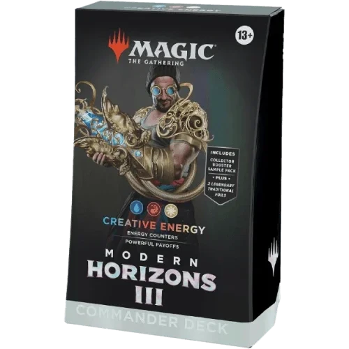 In Commander, four players come together to show their strength and strategy, with one player coming out on top. Each 100-card ready-to-play Modern Horizons 3 Commander Deck makes it easy for Commander fans in your store to grab a deck and play right away.