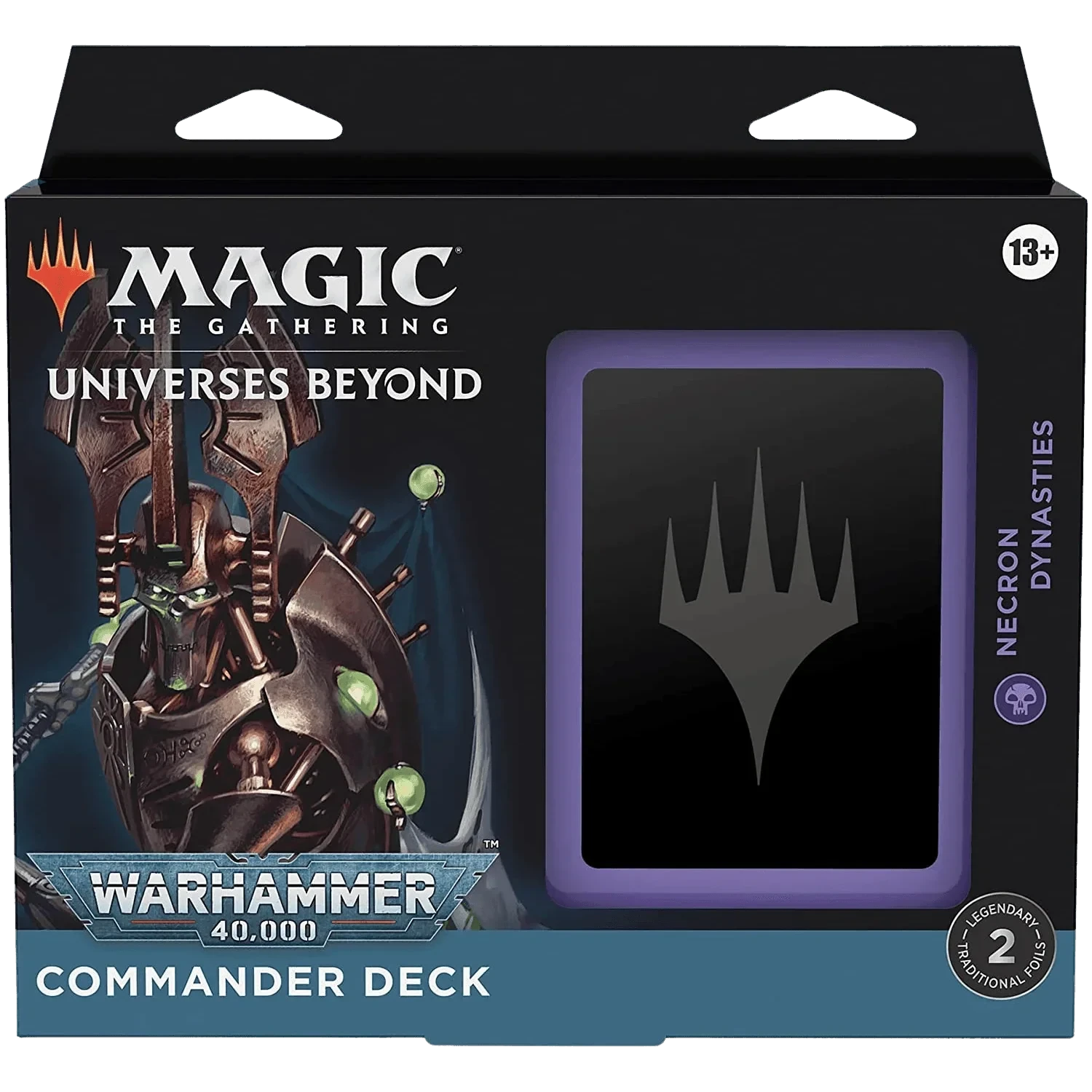 Commander is an exciting, unique way to play Magic that is all about awesome legendary creatures, big plays, and battling your friends in epic multiplayer games! Take out one of the four commander decks and you will find a ready to play deck, tokens, a deck box and lots more! Choose from Tyranid Swarm, Forces of the Imperium, Necron Dynasties or The Ruinous Powers.