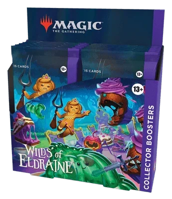 Hot and fresh out of the oven, this batch of Collector Boosters is a feast fit for a royal! Along with the guaranteed Rares, Traditional Foils, and Extended-Art card, these boosters contain at least 3 special Borderless cards to spice things up. Compliments to the chef—your deck has never looked this good at the table. This Wilds of Eldraine Collector Booster Box contains 12 Wilds of Eldraine Collector Boosters. Each Collector Booster contains 15 Magic: The Gathering cards and 1 Traditional Foil double-sided token, with a combination of 5 cards of rarity Rare or higher, 5 Uncommon, 4 Common, and 1 Full-Art Land cards. Every pack contains a total of 10–12 Traditional Foil cards.