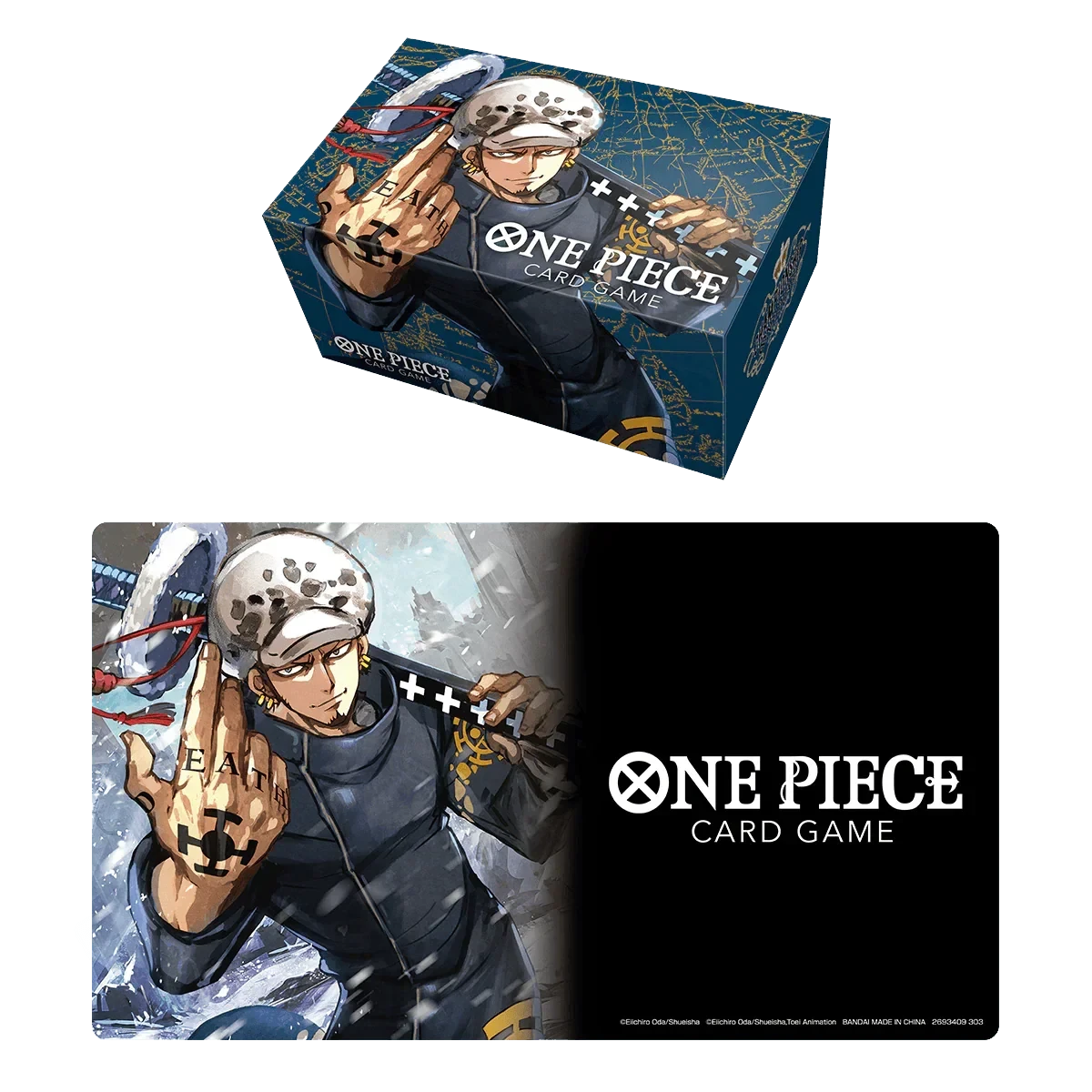 For the ONE PIECE CARD GAME, you can now play your games with the all-new officially licensed playmat and storage box featuring Trafalgar Law!