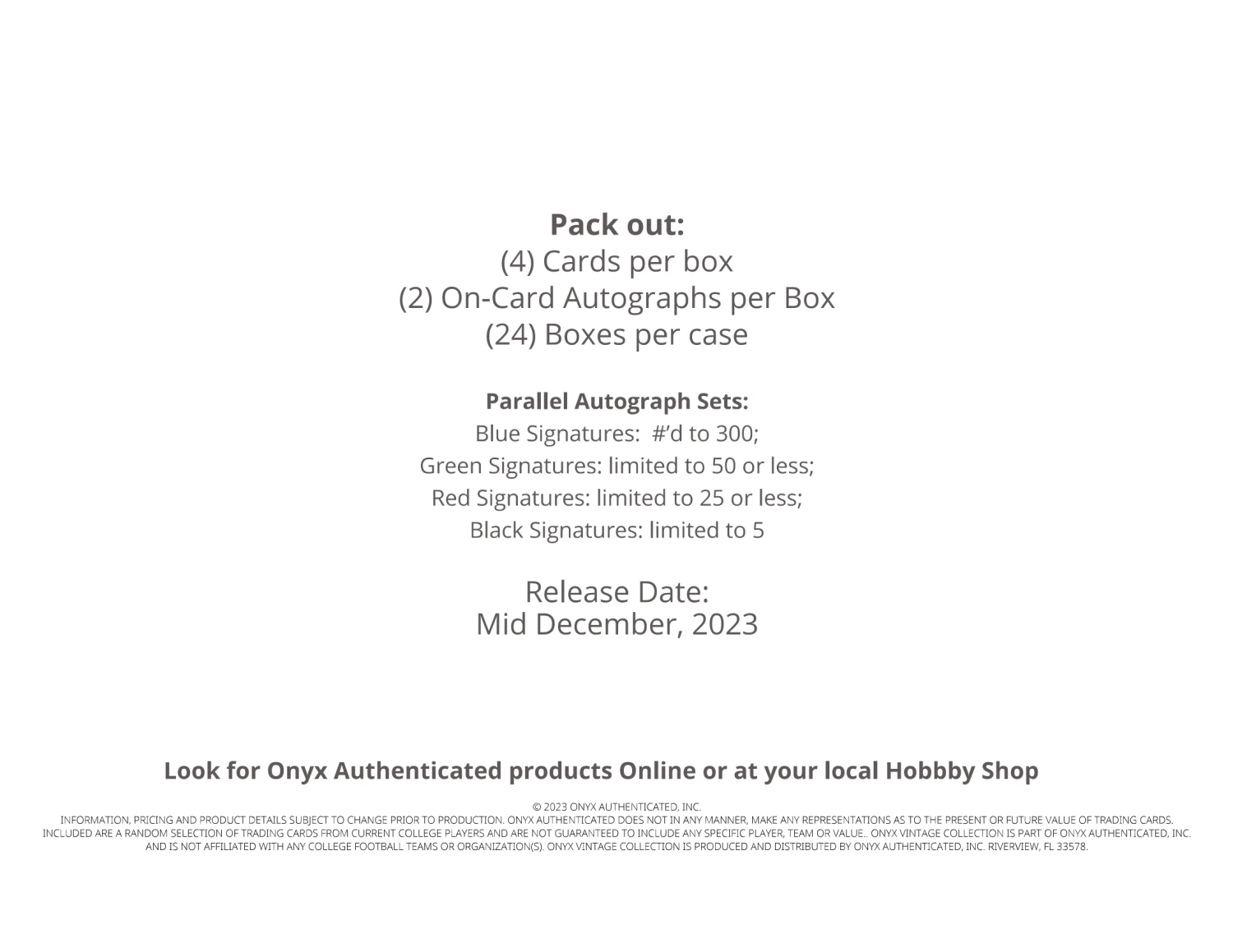 2023 Onyx Vintage Football Cards PRODUCT HIGHLIGHTS: