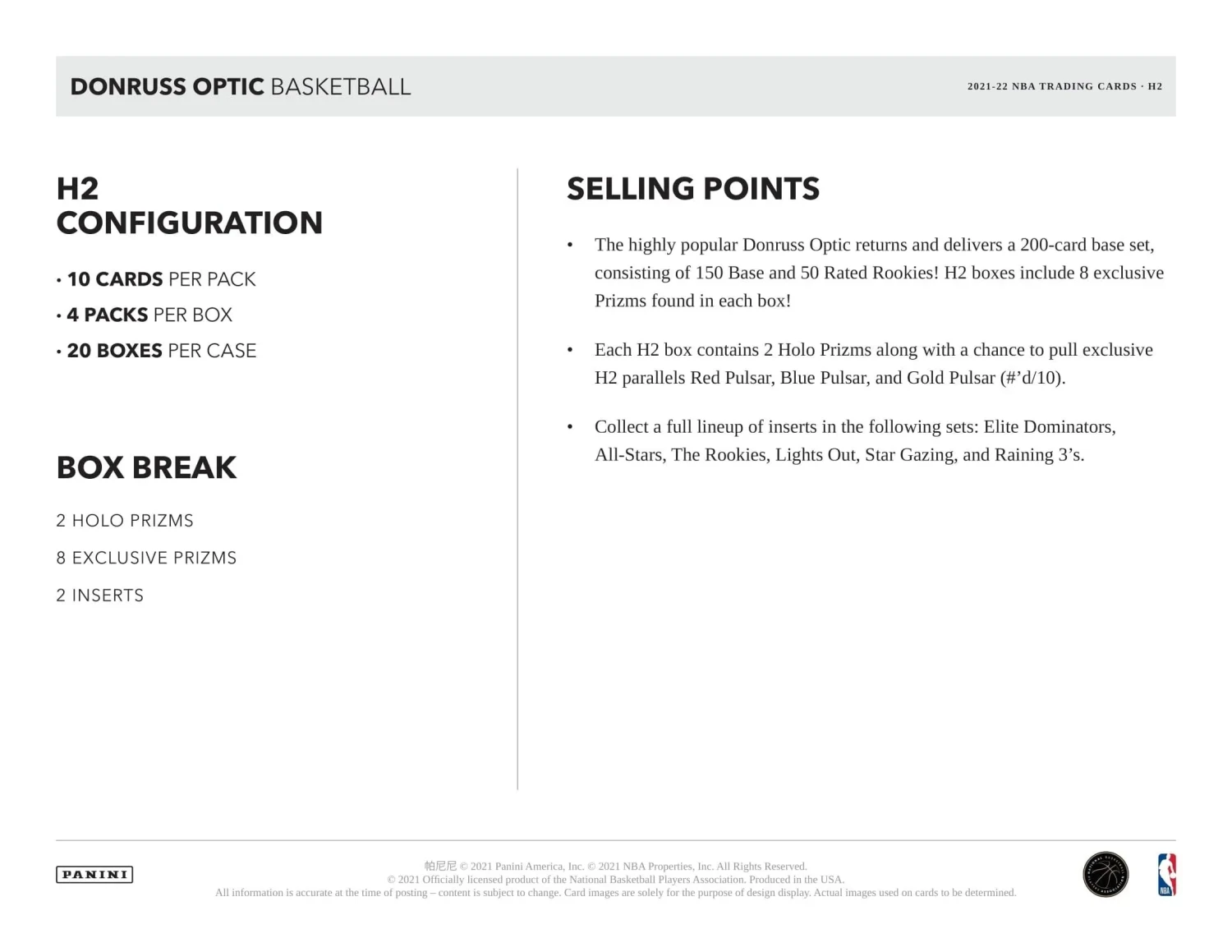 The highly popular Donruss Optic returns and delivers a 200-card base set, consisting of 150 Base and 50 Rated Rookies! H2 boxes include 8 exclusive Prizms found in each box!