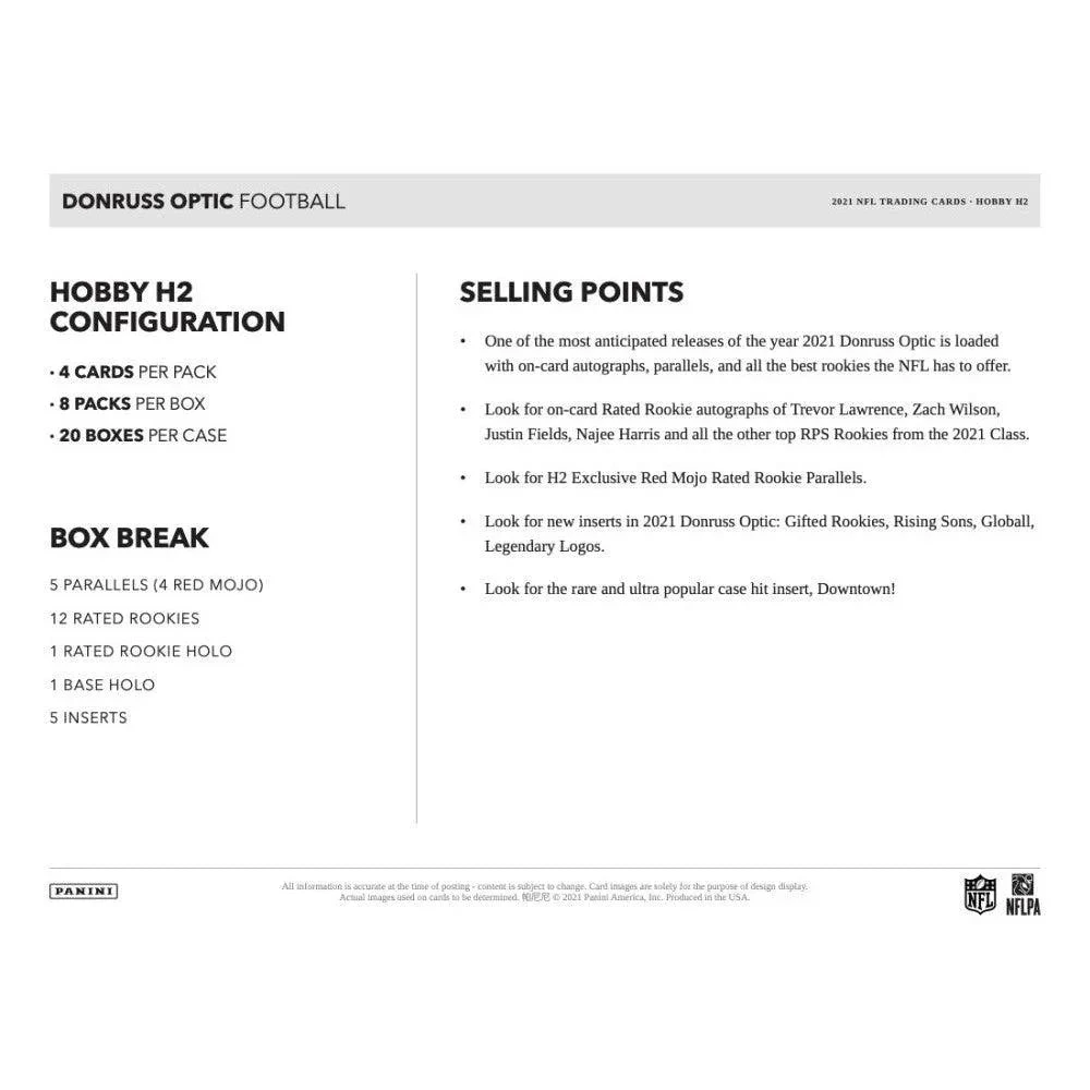 2021 Donruss Optic H2 NFL Football Cards PRODUCT HIGHLIGHTS: