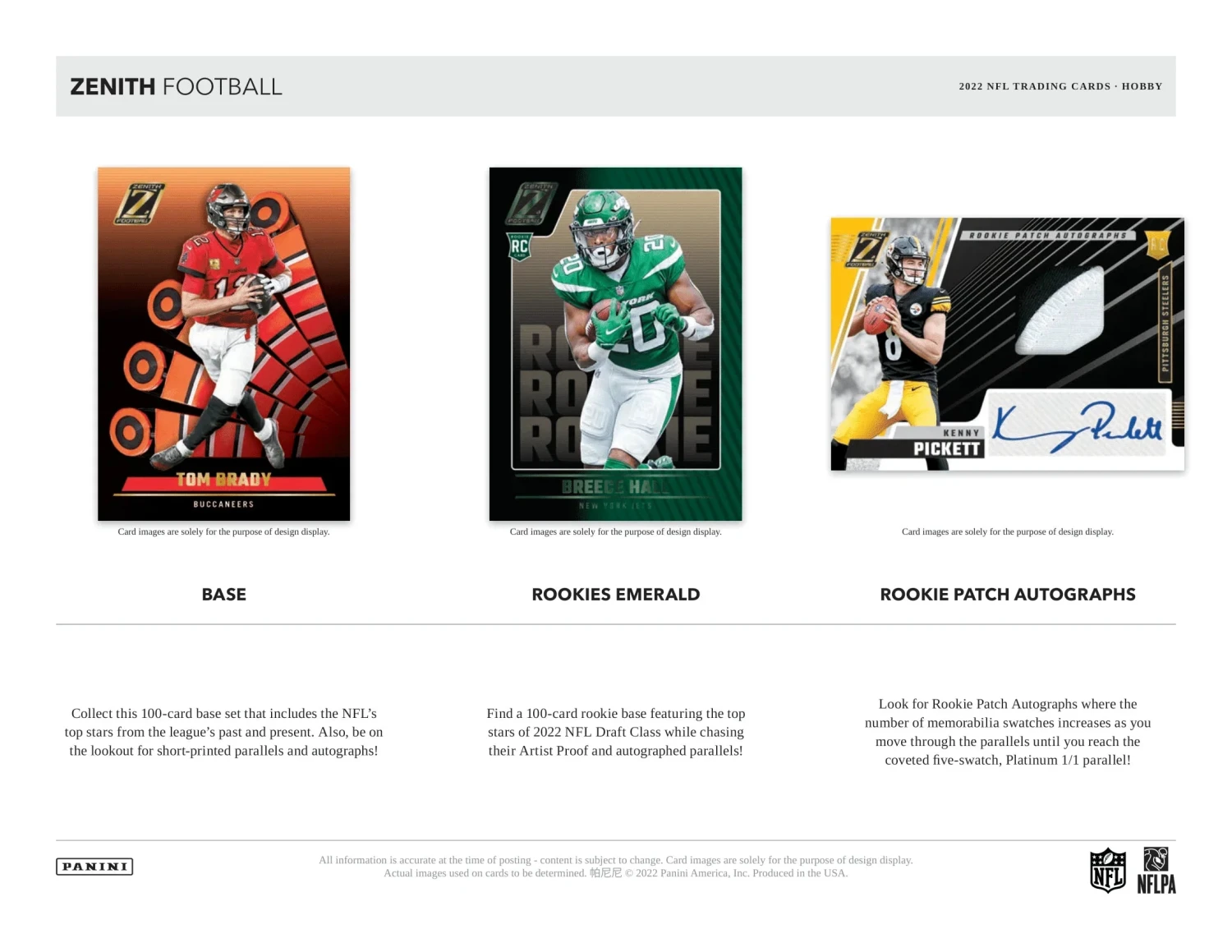 2022 Panini Zenith NFL Football Cards PRODUCT HIGHLIGHTS:
