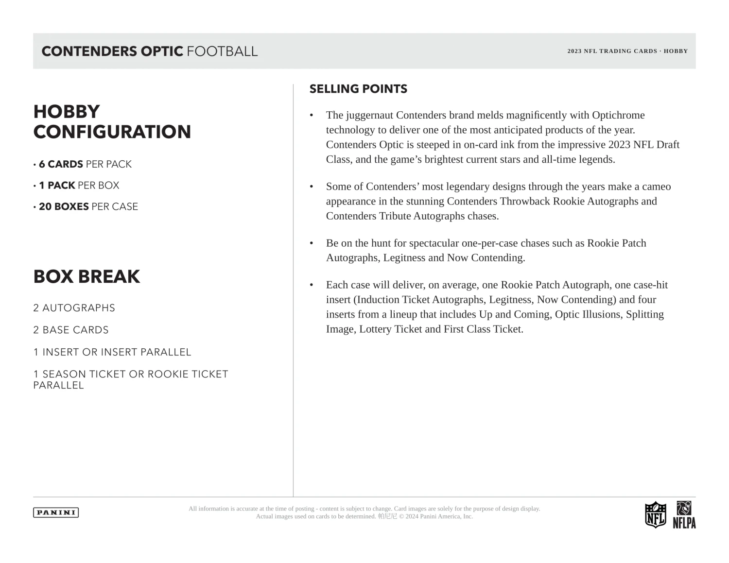 2023 Panini Contenders Optic NFL Football Cards PRODUCT HIGHLIGHTS: