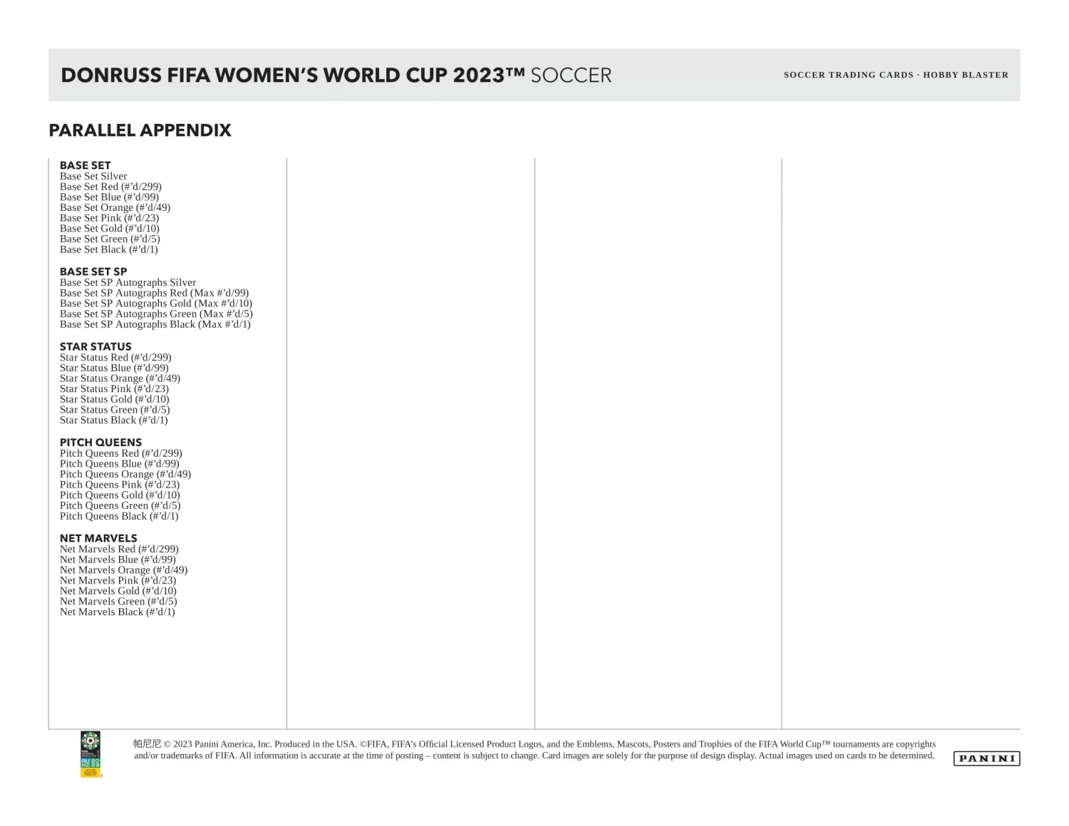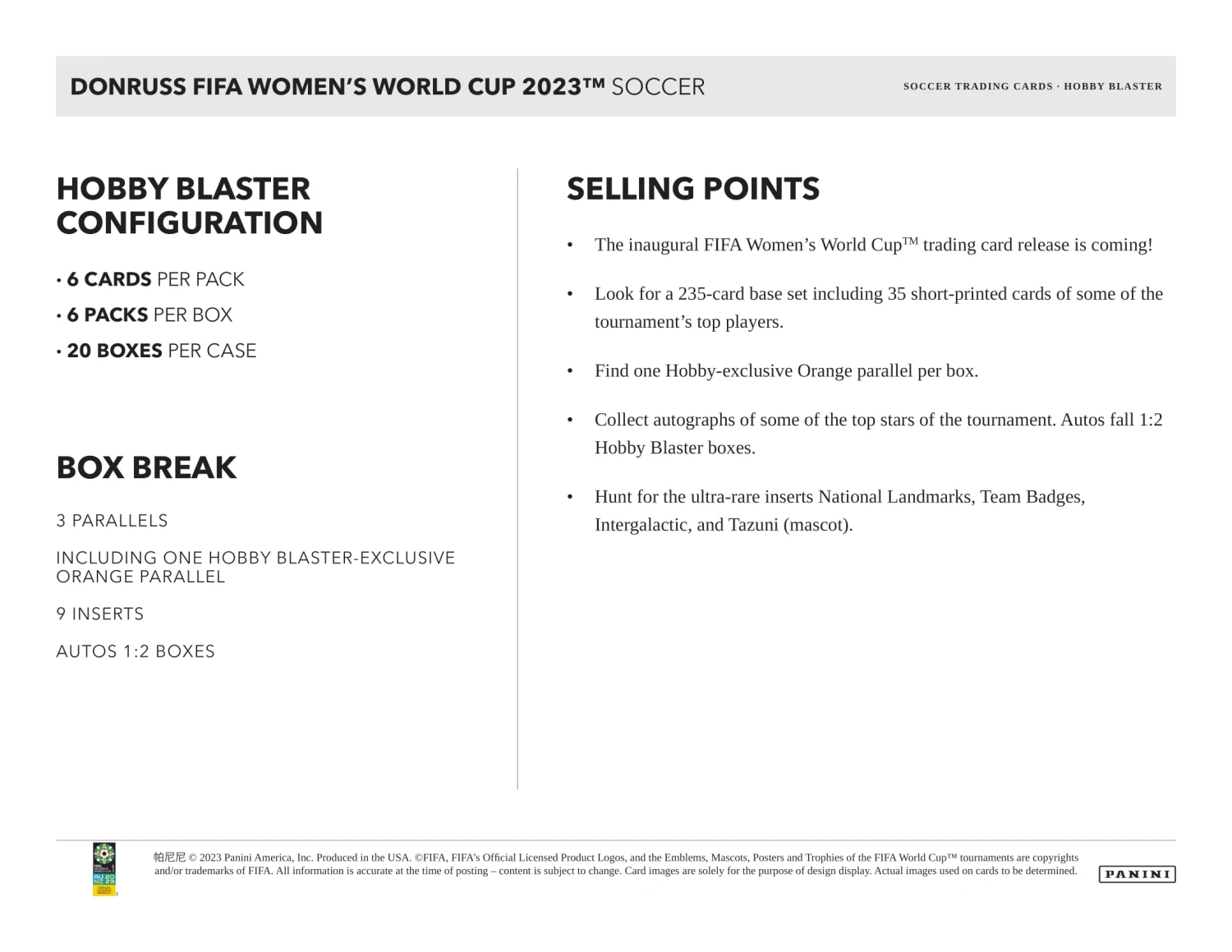 2023 Donruss FIFA Women’s World Cup Soccer Cards Blaster Product Highlights: