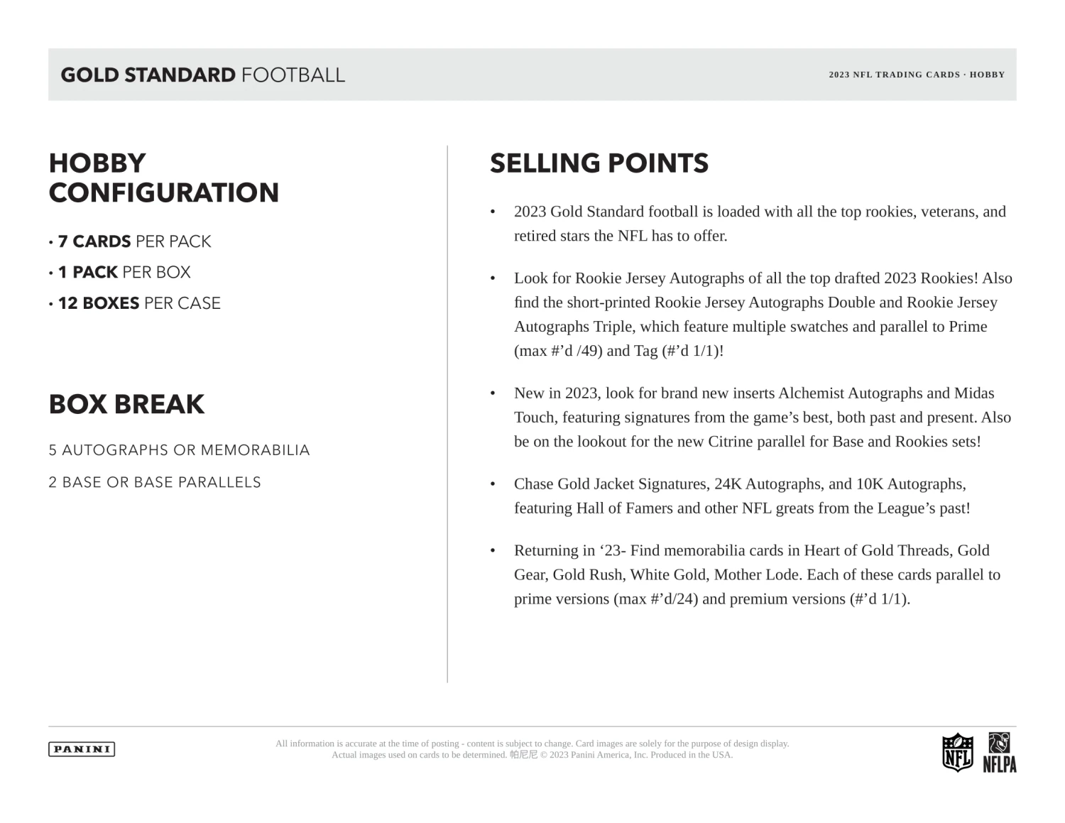 2023 PANINI GOLD STANDARD NFL FOOTBALL CARDS PRODUCT HIGHLIGHTS: