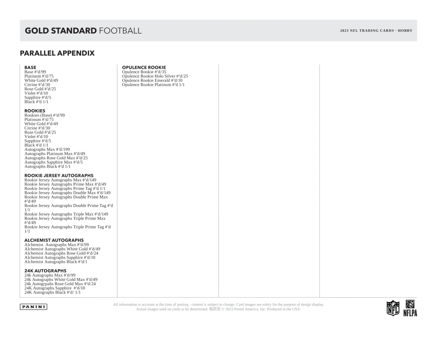 - Returning in 2023, look for low-numbered rookie cards that feature the stunning Opulence design from the top rookies of the 2023 NFL Draft Class!