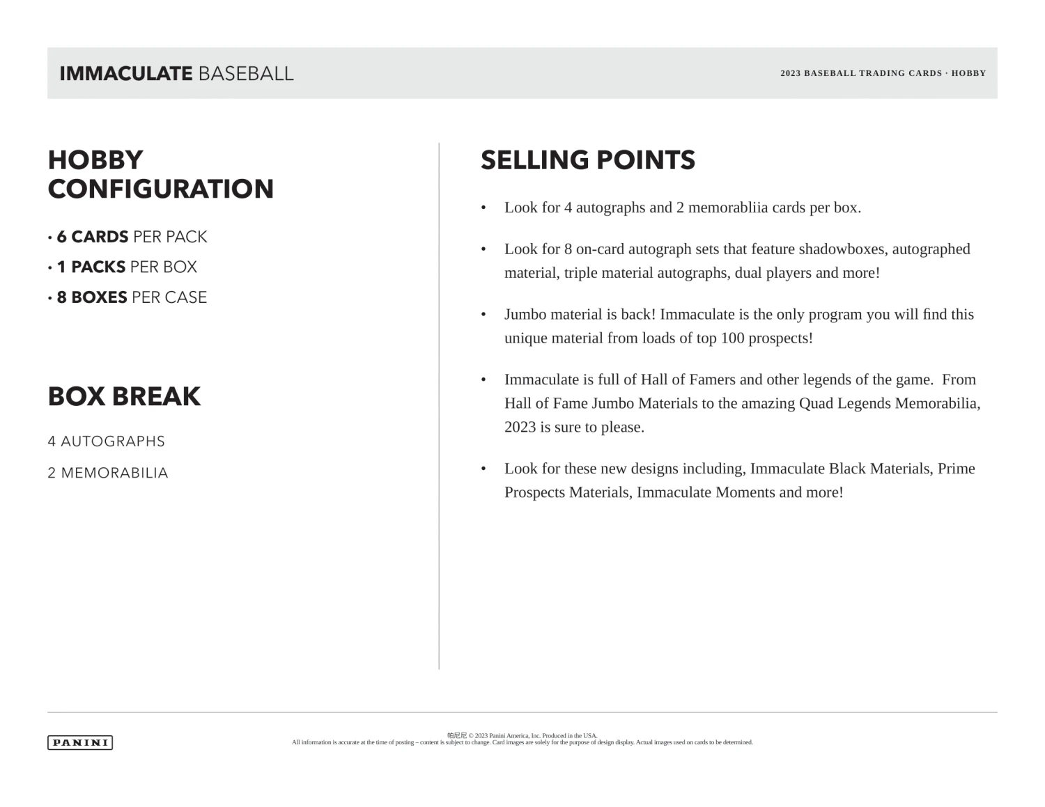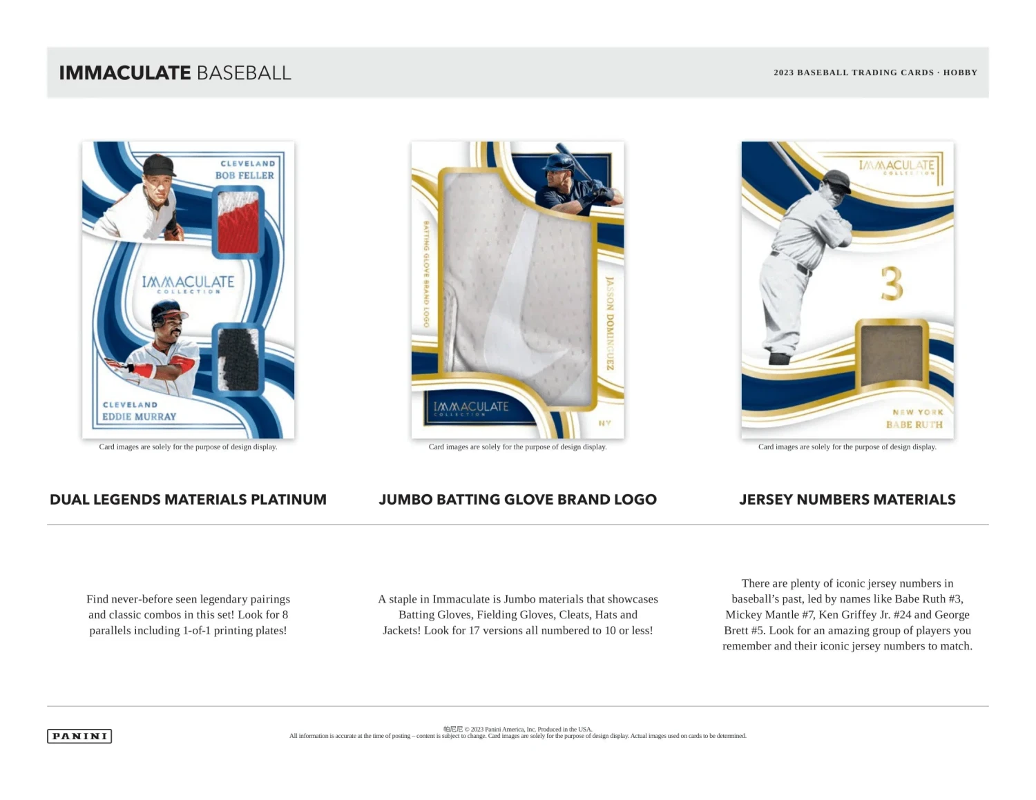 2023 Panini Immaculate Baseball Cards PRODUCT HIGHLIGHTS:
