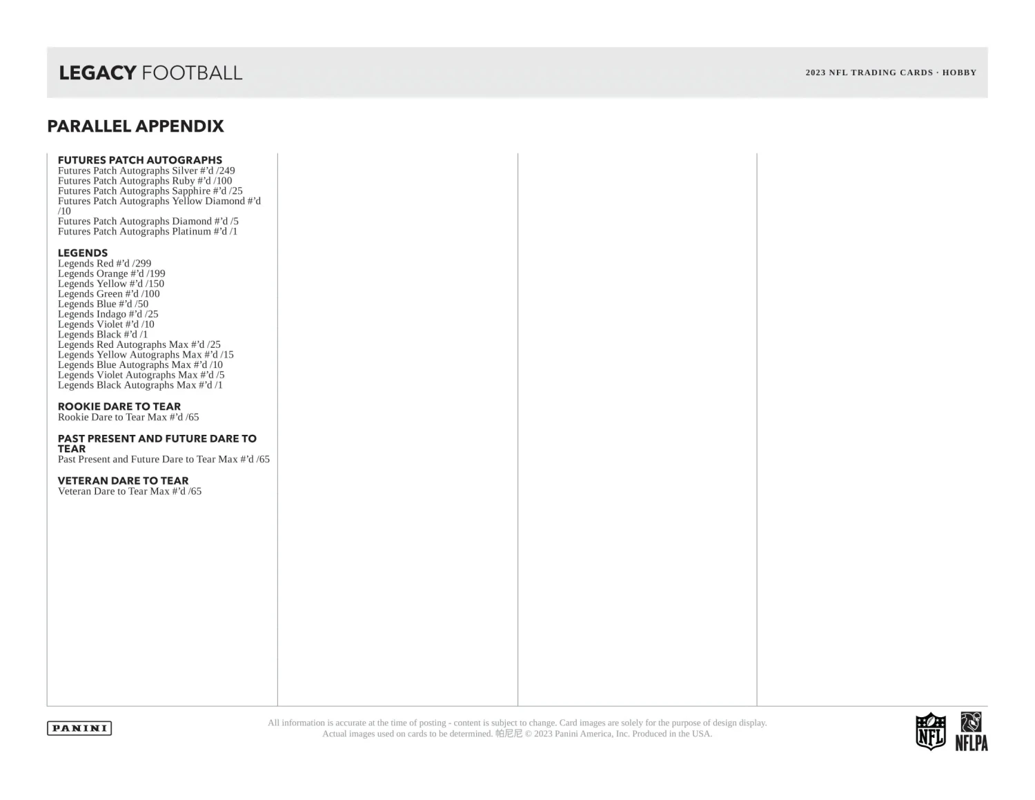 2023 Panini Legacy NFL Football Cards PRODUCT HIGHLIGHTS: