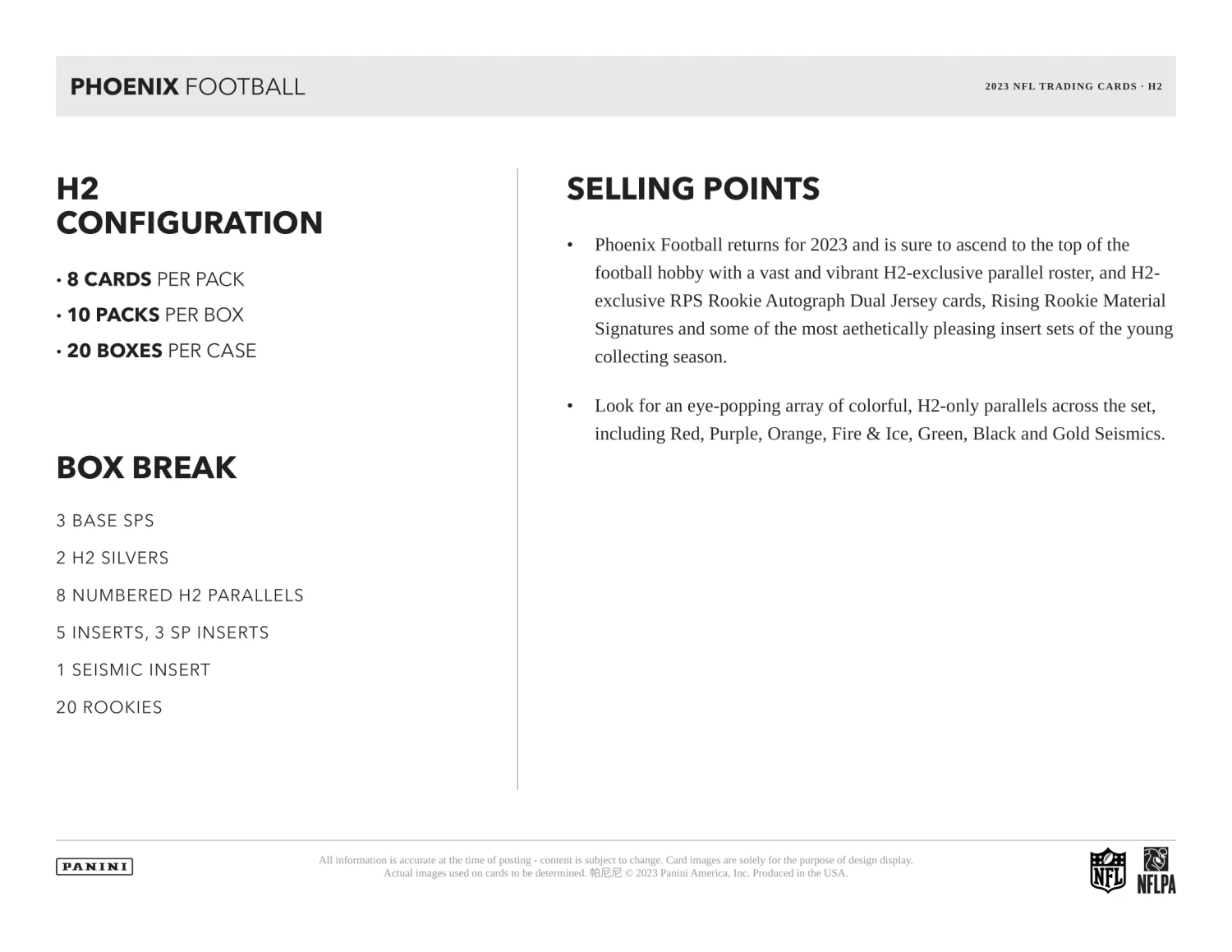 2023 Panini Phoenix H2 NFL Football Cards PRODUCT HIGHLIGHTS: