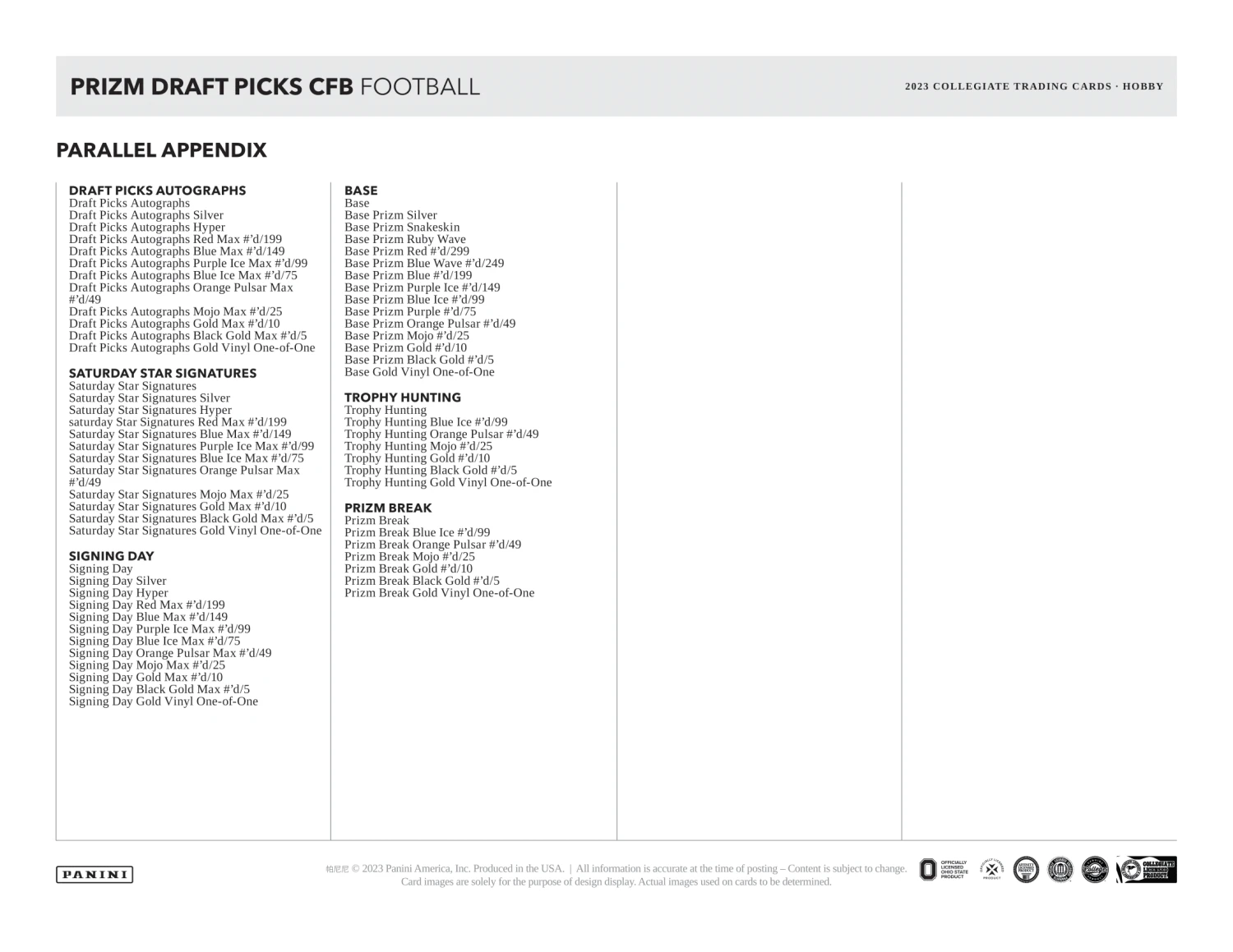 - 2023 Prizm Draft Picks will have a base set that contains 200 of the best former college stars, as well as the first officially licensed cards of the best up-and-coming stars.