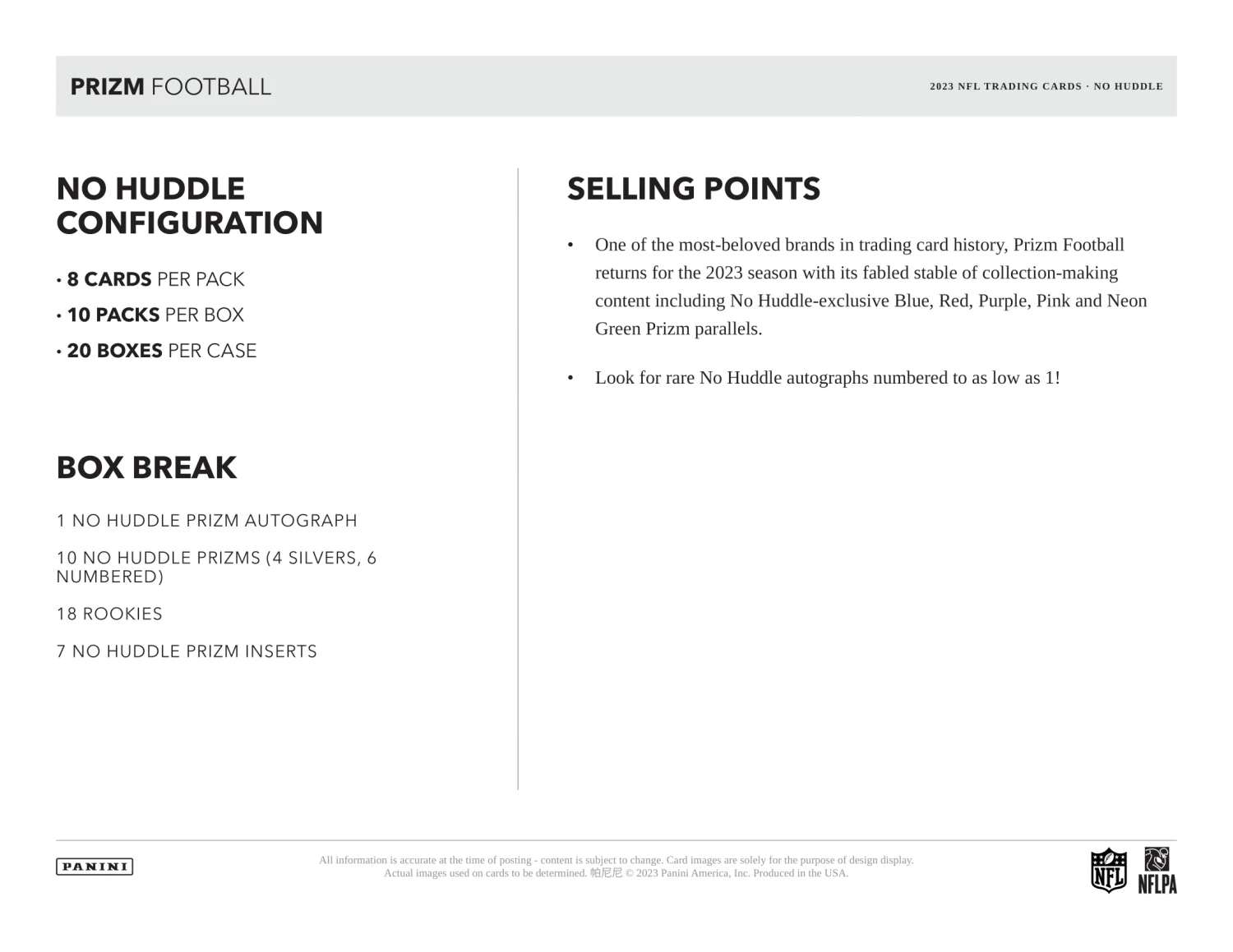 2023 Panini Prizm No Huddle NFL Football Cards PRODUCT HIGHLIGHTS:
