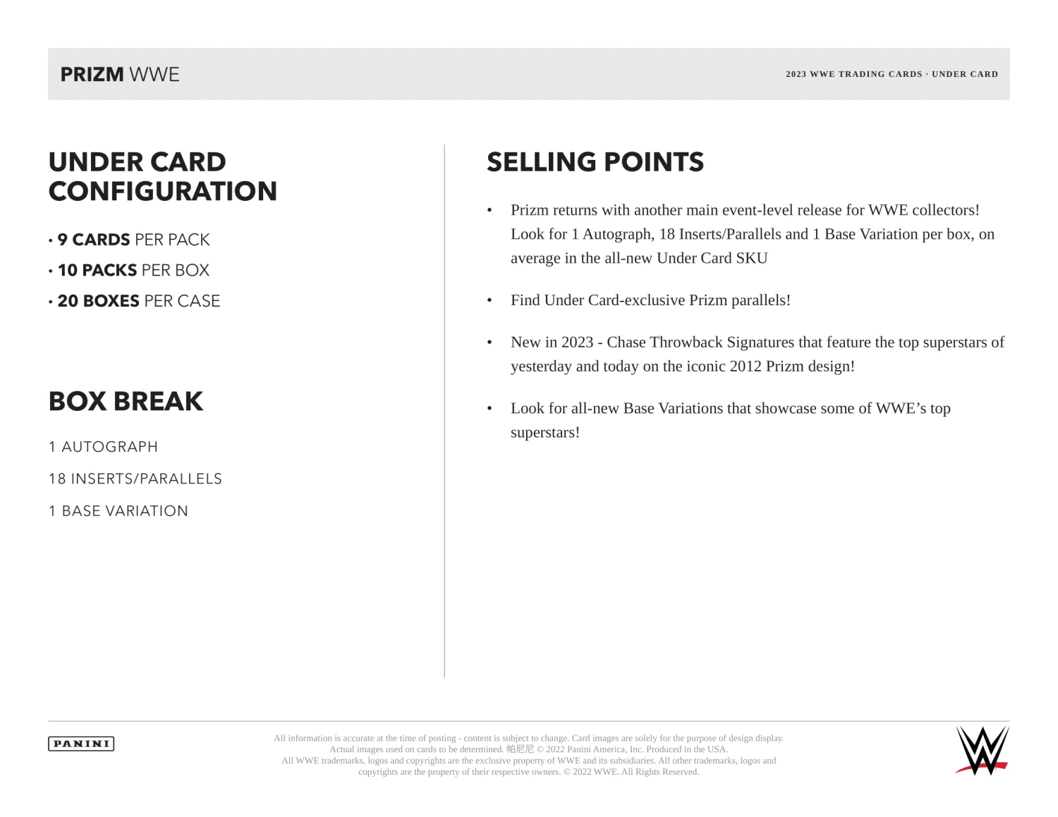 2023 Panini Prizm Under Card WWE Trading Cards Cards PRODUCT HIGHLIGHTS: