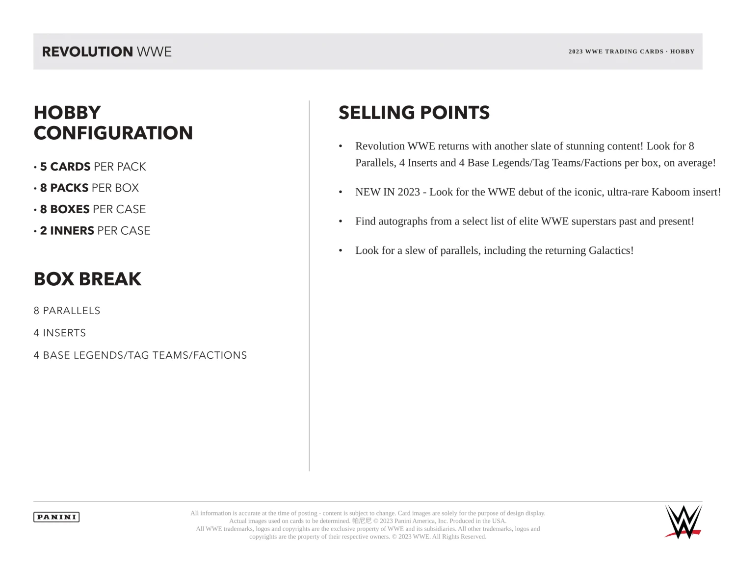 2023 Panini Revolution WWE Trading Cards PRODUCT HIGHLIGHTS: