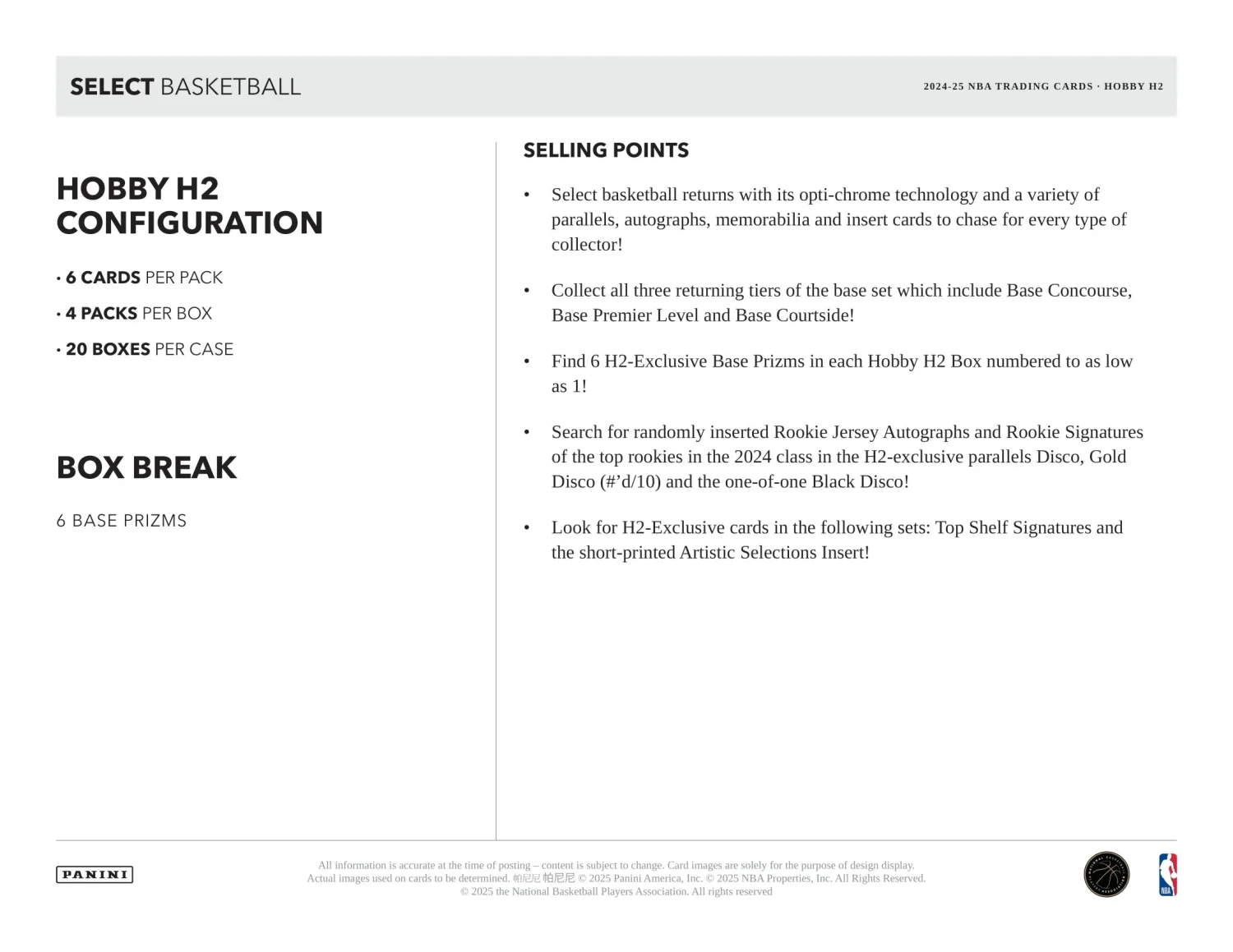 2024-25 Panini Select H2 NBA Basketball Cards PRODUCT HIGHLIGHTS: