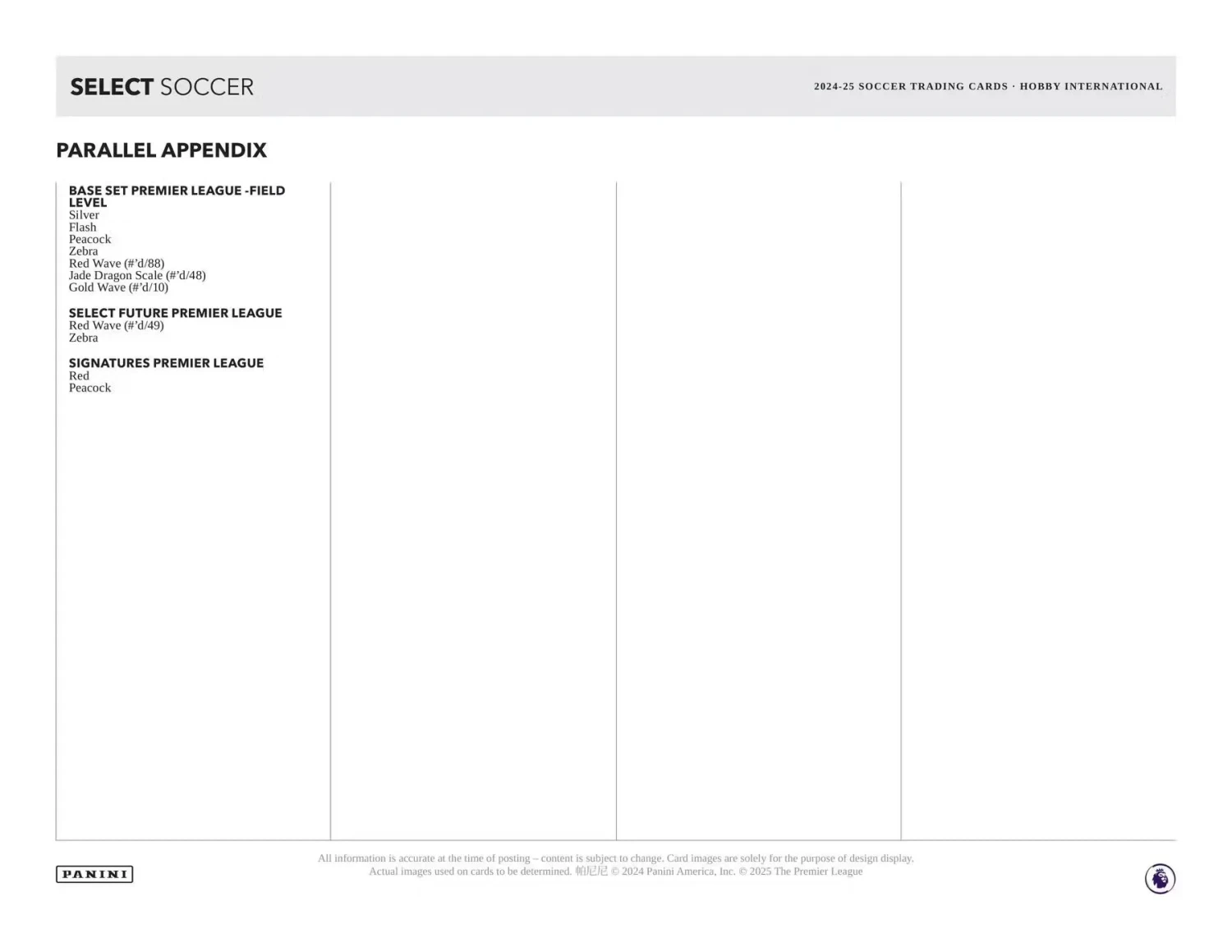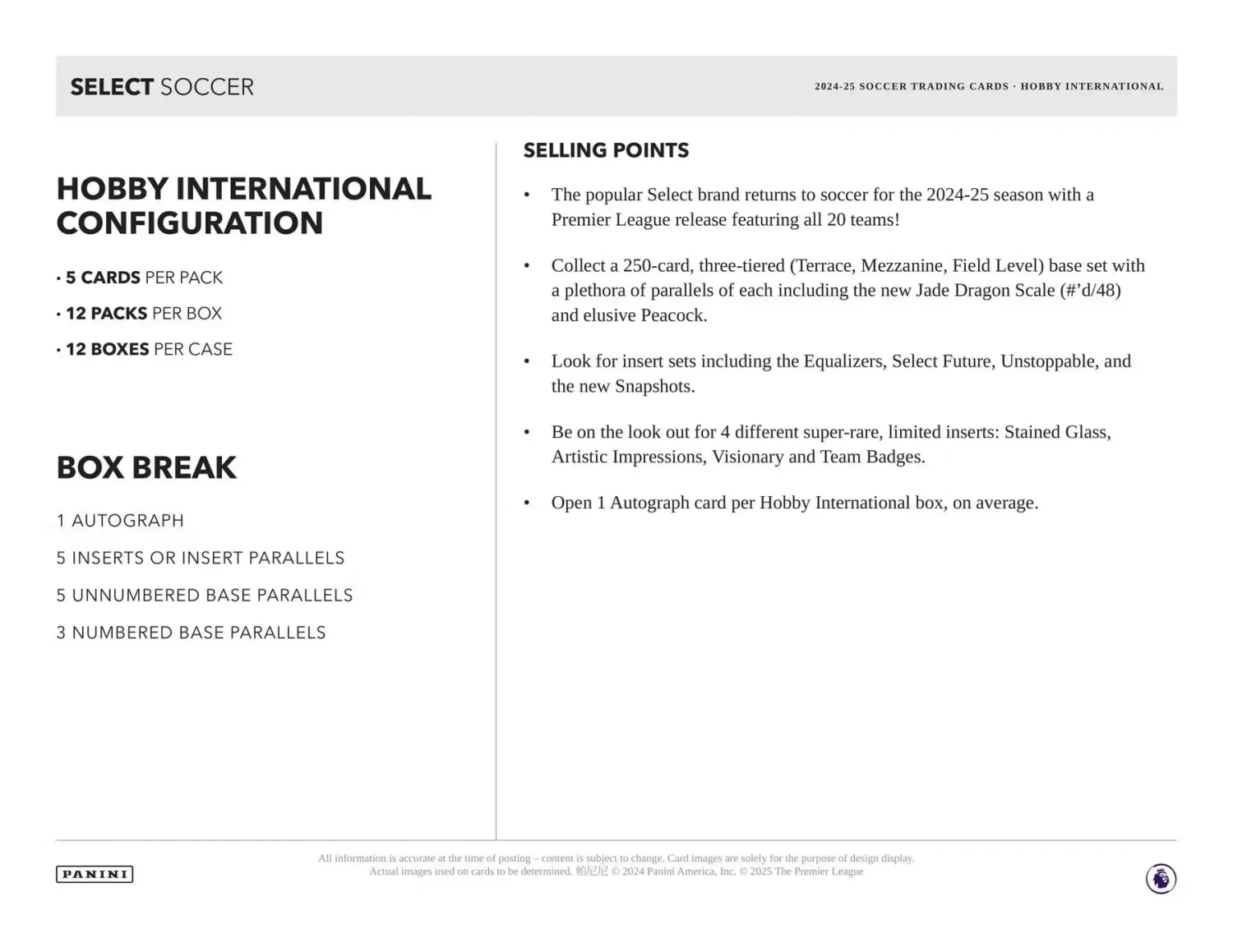 The popular Select brand returns to soccer for the 2024-25 season with a Premier League release featuring all 20 teams! Select brings a unique, tiered base set of 250 cards in three levels of differing rarity (Terrace, Mezzanine, Field Level).