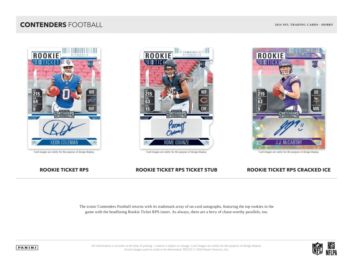 - The iconic Contenders Football returns with its trademark array of ON-CARD autographs, featuring the top rookies in the game with the headlining Rookie Ticket RPS insert. As always, there are a bevy of chase-worthy parallels, too.