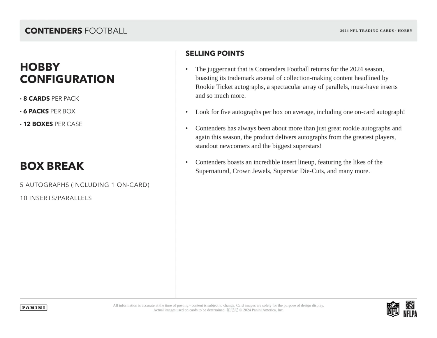 2024 Panini Contenders NFL Football Cards PRODUCT HIGHLIGHTS: