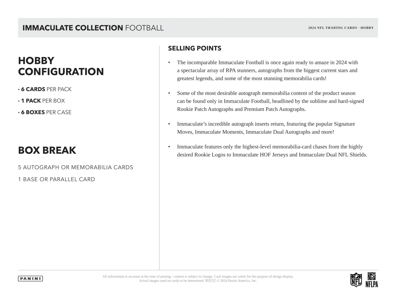2024 Panini Immaculate NFL Football PRODUCT Highlights: