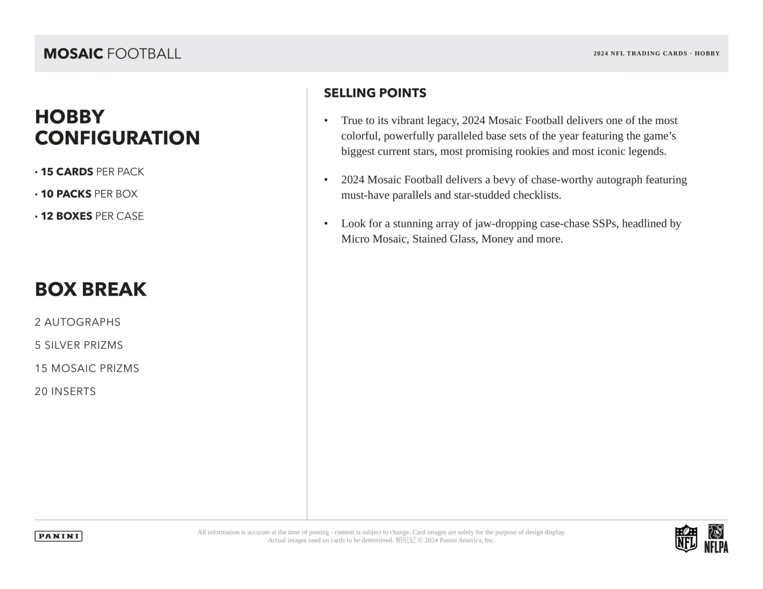 2024 Panini Mosaic NFL Football PRODUCT HIGHLIGHTS: