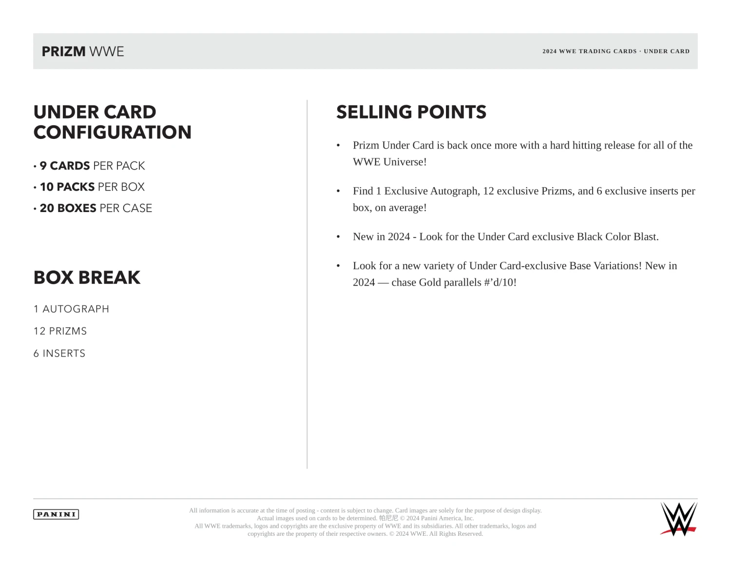 2024 Panini Prizm Under Card WWE Trading Cards Cards PRODUCT HIGHLIGHTS: