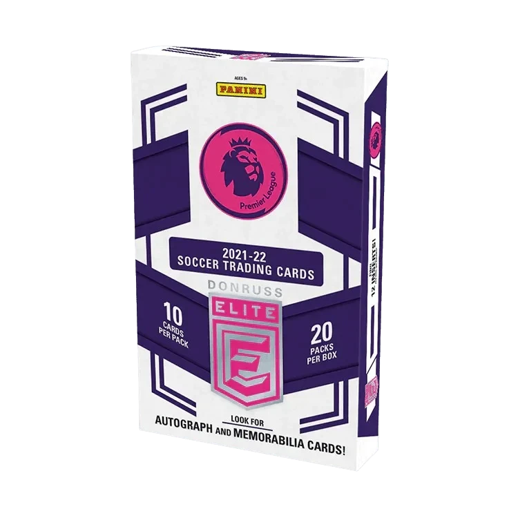 The sought-after Elite brand makes its English soccer debut with the 2021-22 season, delivering the best players from all 20 Premier League Clubs! Collect a 200 card base set, including a 25 card subset of the hottest rookies in Premier League. Find 4 rare Insert cardsets: Spellbound, Elite Deck, Star Status, and Primary Colors. Hunt for limited, Hobby-exclusive parallel cards. Unwrap 2 Autograph cards and 2 Memorabilia cards per case, on average.