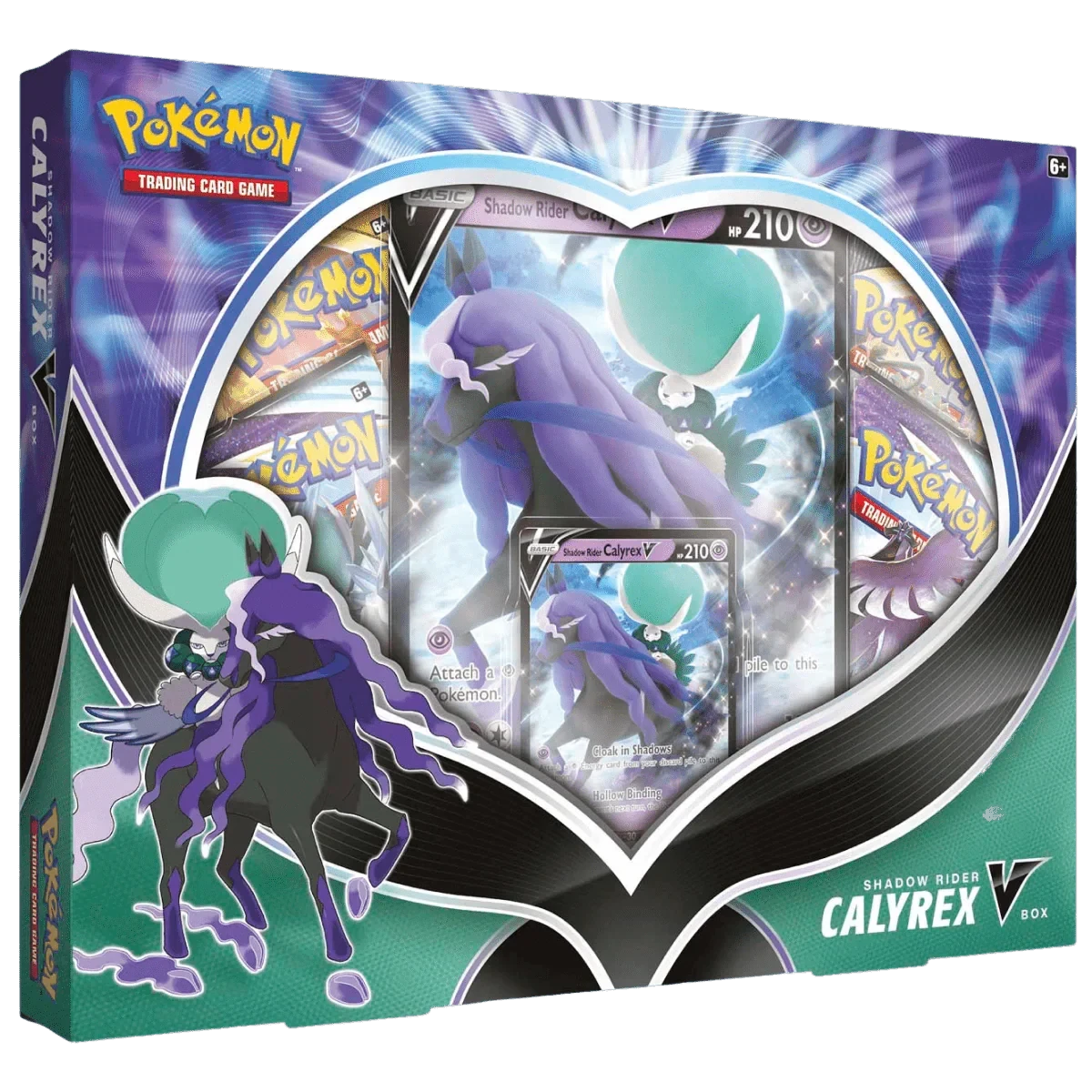The Pokémon TCG: Shadow Rider Calyrex V Box includes: