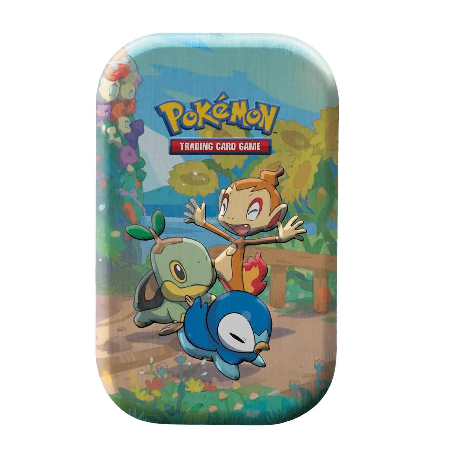 Expand your collection with this Pokémon Trading Card Game: Celebrations Mini Tin, perfectly sized for taking your favorite cards on the go! This fantastic tin is easy to open and features Sinnoh’s first partner Pokémon in one of eight fun Pokémon illustrations—and all eight form a single image when you line them up!