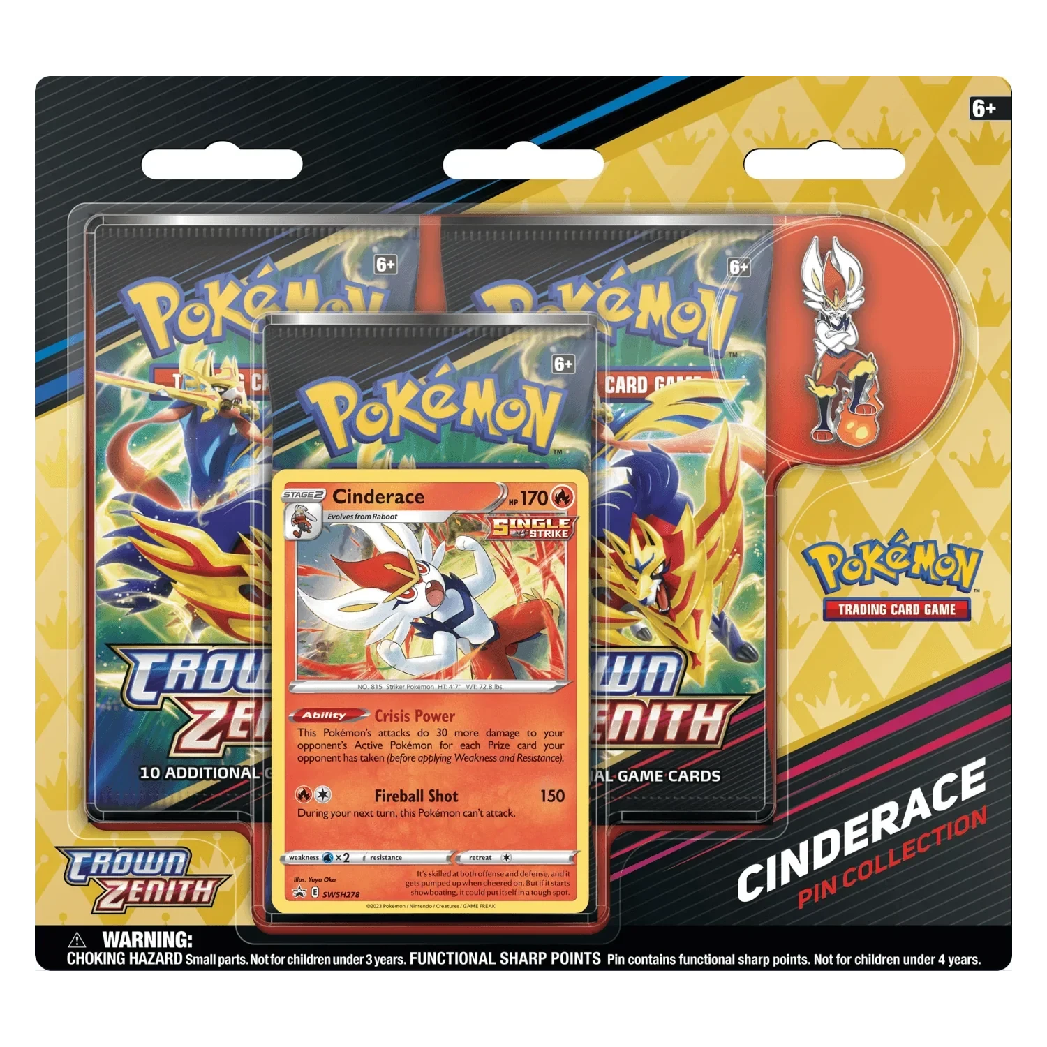 Celebrate Your Journey Through Galar! Capture a region’s worth of memories and show the world how far you’ve come with a glossy enamel pin featuring one of Galar’s fully evolved first partner Pokémon! You’ll also find a ready-to-play promo card and a set of booster packs from the special Crown Zenith expansion to expand your collection.
