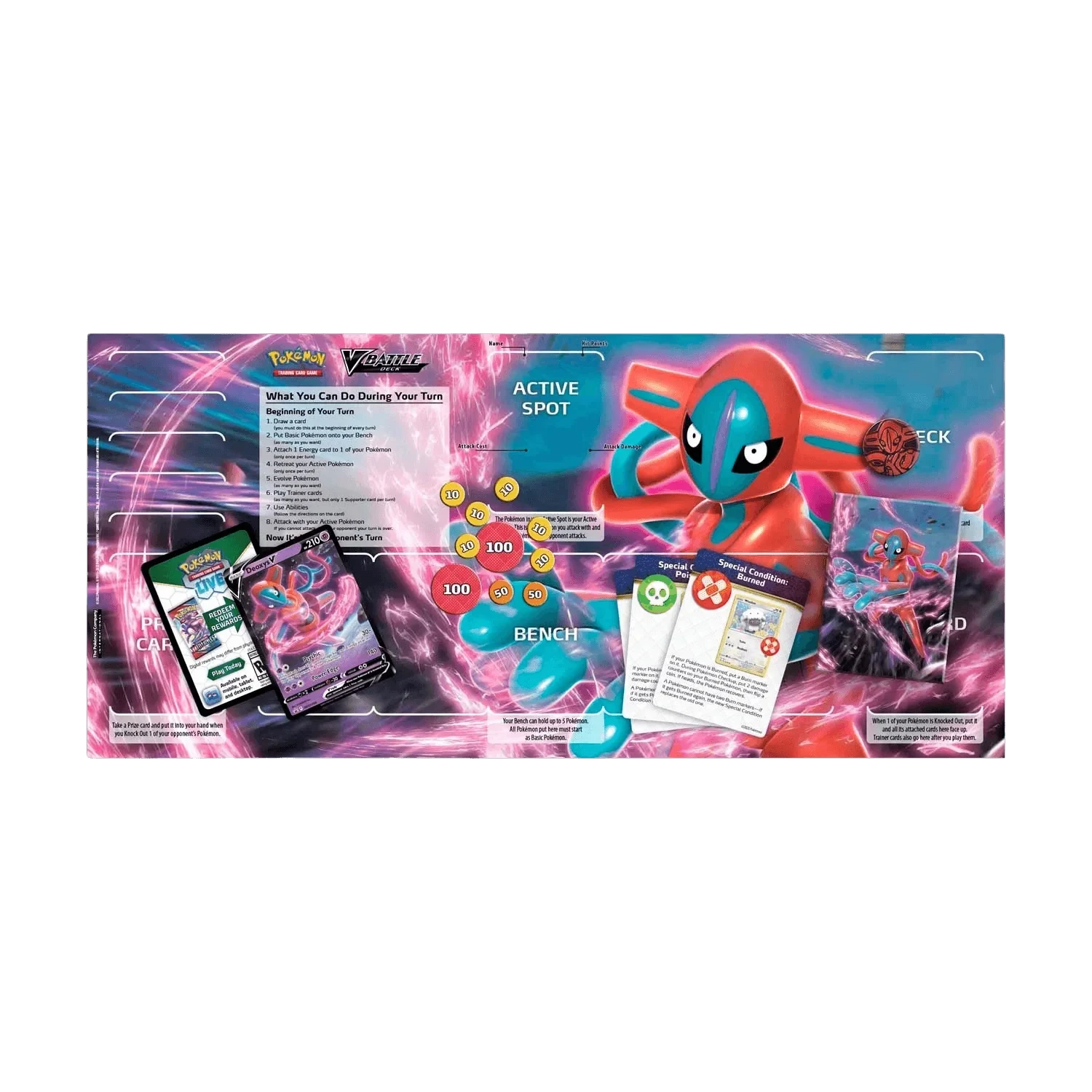 - 1 ready-to-play 60-card deck featuring either Deoxys V or Zeraora V
