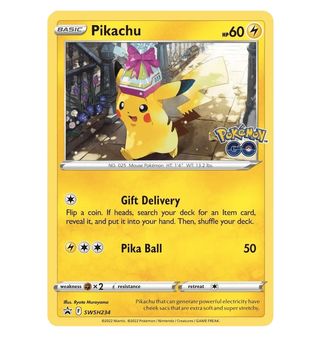 Let Pikachu help you to battle hard and build your Pokémon TCG collection! The Mouse Pokémon is here as a foil promo card that can help you find an Item card in your deck, and it’s joined by another Pokémon friend as a playable foil card. Expand your collection with Pokémon GO booster packs, and decorate your binder or deck boxes with a set of colorful stickers featuring Pikachu, Snorlax, and Blissey!