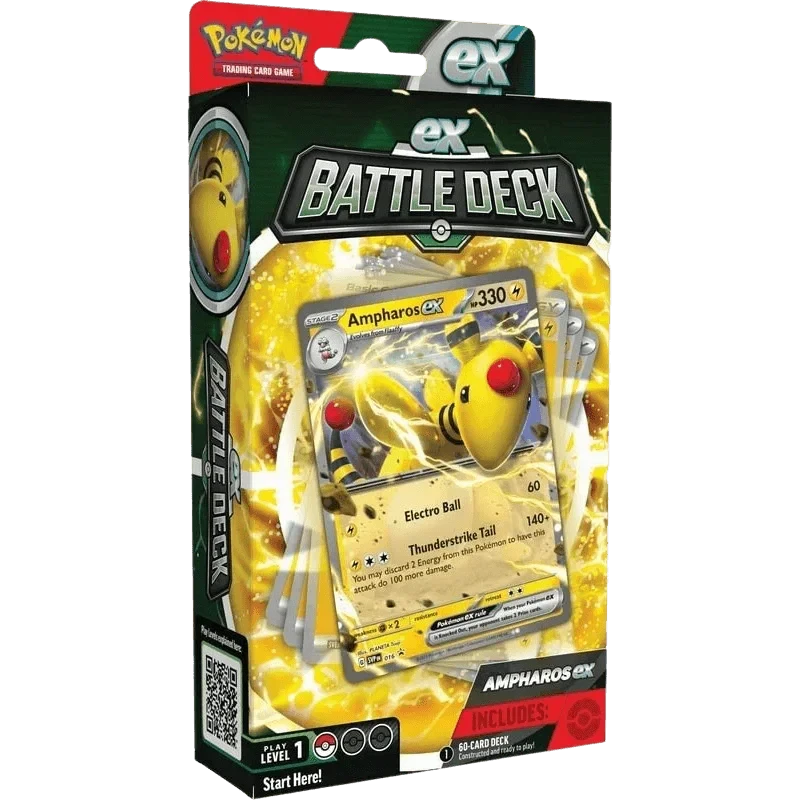 Powerful Pokémon ex are ready to charge onto the battlefield in the new Pokémon TCG: ex Battle Decks! Each 60-card deck is led by an exceptional Pokémon ex and includes everything you need to play right away. Let the battle begin! In each ex Battle Deck, you’ll find a ready-to-play 60-card deck, 3 reference cards and a rules booklet, as well as damage counters, a strategy sheet, metallic coin and a code card for the Pokémon TCG Online.