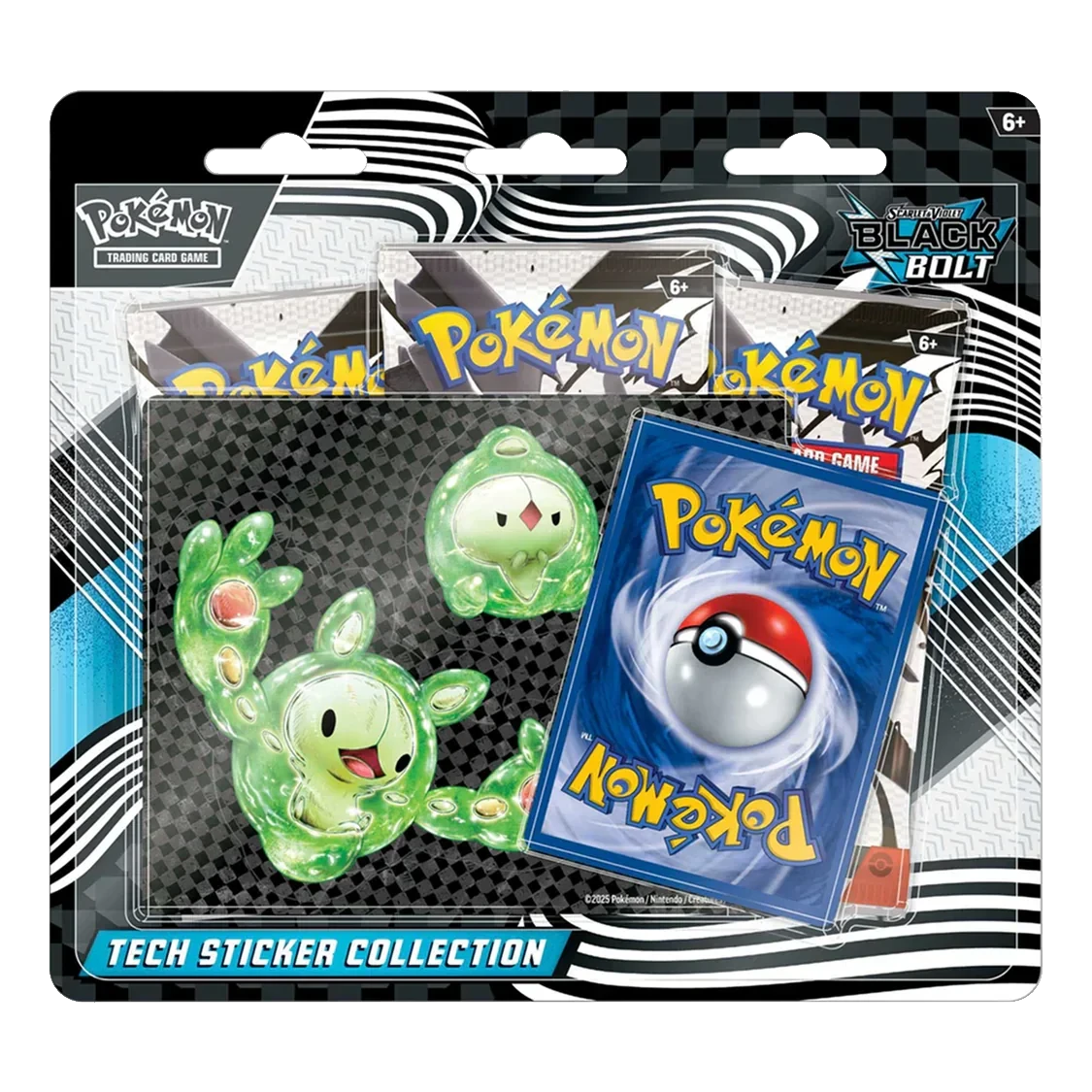 Would you shake hands with the Multiplying Pokémon? Team up with Reuniclus as a foil promo card that can evolve your entire Bench at once, then decorate your computer, tablet, or phone with durable tech stickers featuring the full Evolution chain: Solosis, Duosion, and Reuniclus! Then, find more Pokémon first discovered in the Unova region when you open three booster packs from the special Scarlet & Violet— Black Bolt expansion!