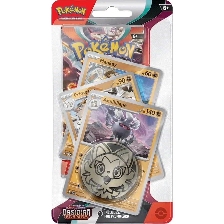 Get in on the latest Pokémon TCG action with an awesome booster pack, three promo cards featuring a full Evolution chain of either the Fighting-Type Annihilape, or the Metal-Type Kingambit, as well as a cool Sprigatito metallic coin and a code card for the Pokémon TCG Online!