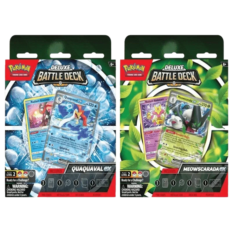 The new Pokémon TCG: Deluxe Battle Decks offer a step up for players who are ready for a challenge, with more advanced strategies and additional power cards. Each 60-card deck includes 3 foil cards and everything you need to play right away. Let the deluxe battle begin!