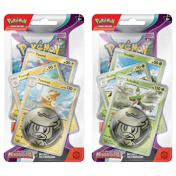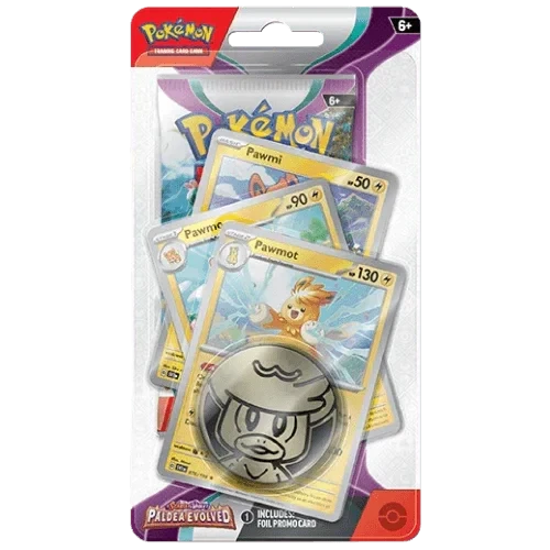 Get in on the latest Pokémon TCG action with an awesome booster pack, three promo cards featuring a full Evolution chain of either the Electric-Type Pawmi, or the Grass-Type Smoliv, as well as a cool metallic coin and a code card for the Pokémon TCG Online!