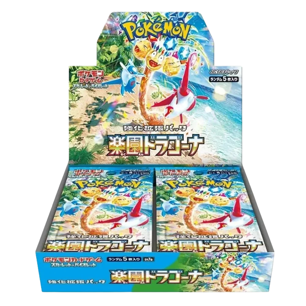 Expand your Pokémon TCG collection with the Scarlet & Violet – Enhanced Expansion Pack – Paradise Dragona. This booster box contains 30 packs, each filled with a selection of powerful and beautifully illustrated cards from the Paradise Dragona series. Designed to enhance your deck and offer new strategic possibilities, these cards feature vibrant artwork and high-quality finishes. Perfect for both competitive players and collectors, this expansion pack is a must-have addition to your Pokémon TCG collection. Add the Scarlet & Violet – Enhanced Expansion Pack – Paradise Dragona to your collection and experience the thrill of discovering new Pokémon and strategies.