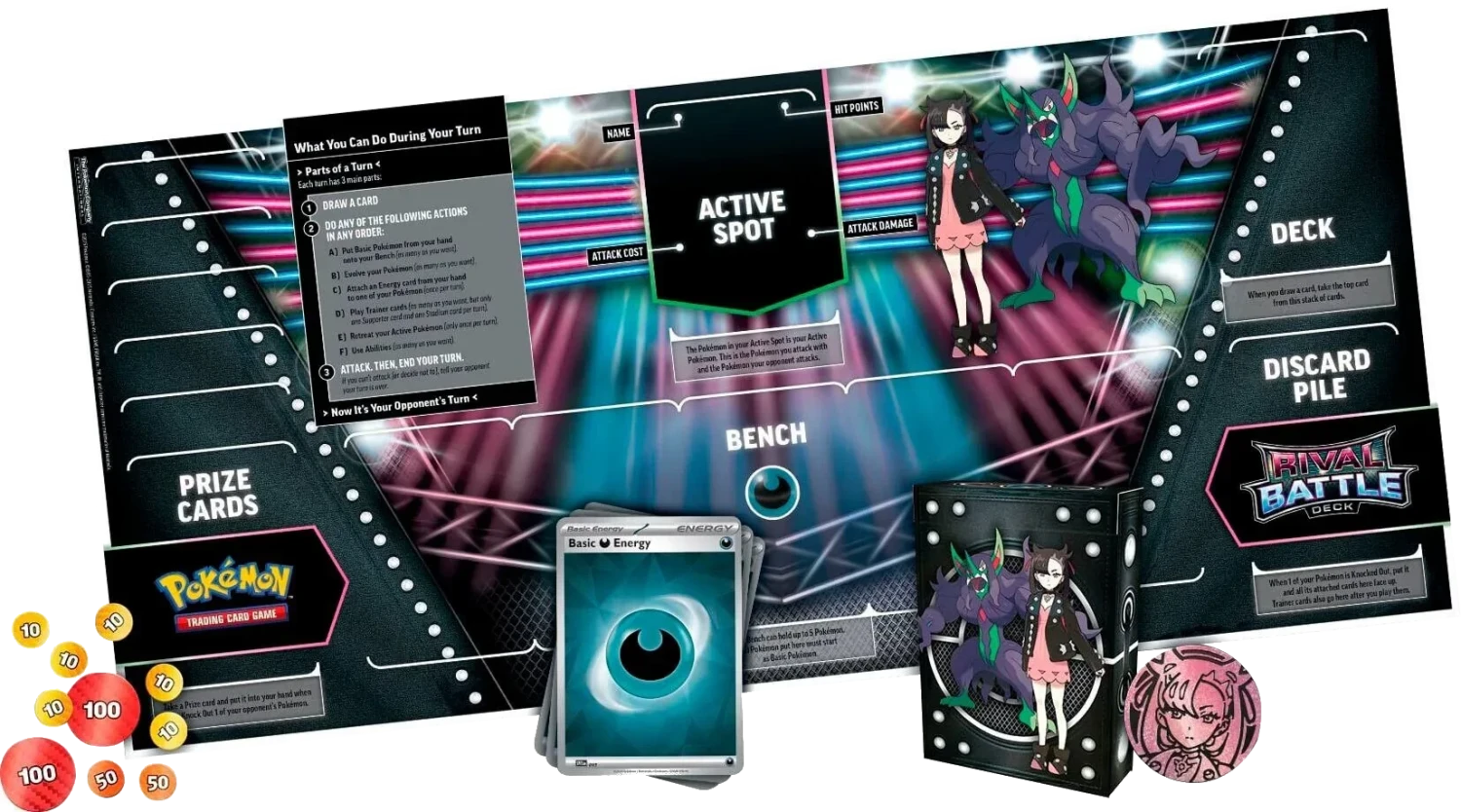 Two new Pokémon TCG: Rival Battle Decks are ready to rumble! Team up with Galar Gym Leader Marnie and her tough-fighting team, or call upon Hoenn Champion Steven and his heavy-metal Pokémon. Each deck includes two powerful Pokémon ex and everything you need to play right away.