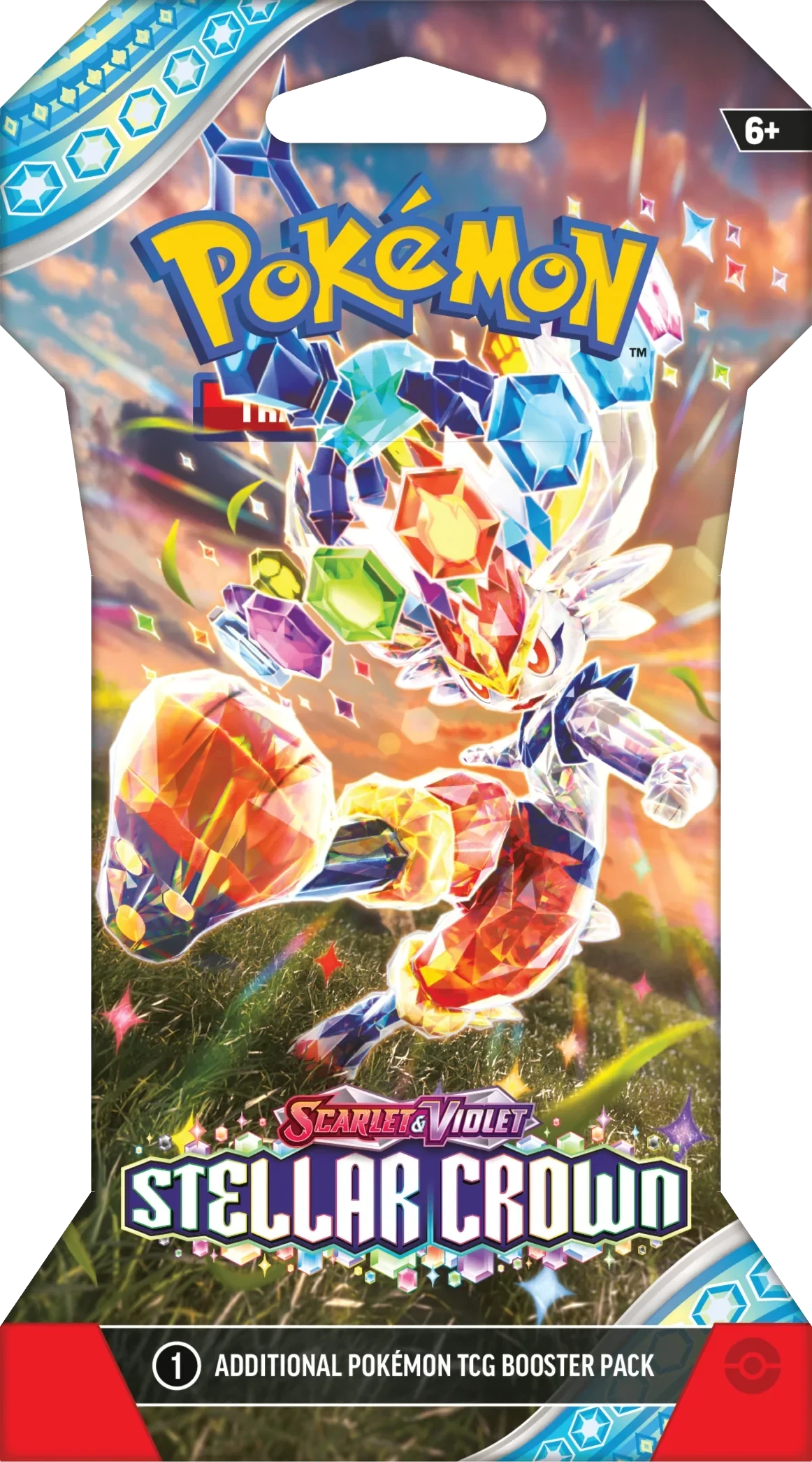Descend into a world below the surface and discover the true potential of the Terastal phenomenon! The Legendary Pokémon Terapagos takes the throne, joined by Cinderace ex, Lapras ex, and Galvantula ex, all wielding brilliant new powers as Stellar Tera Pokémon ex. The newly discovered Hydrapple ex leads even more Pokémon ex into battle, and ACE SPEC cards continue to shake up the game in the Pokémon TCG: Scarlet & Violet—Stellar Crown expansion.