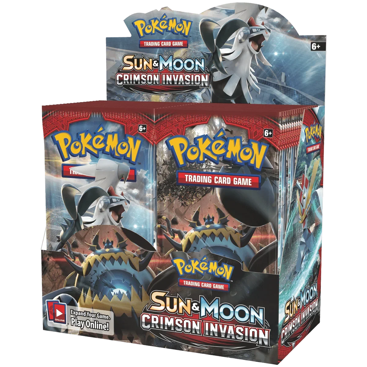 - Includes 36 Pokémon TCG: Sun & Moon—Crimson Invasion booster packs, each containing 10 cards and 1 basic Energy