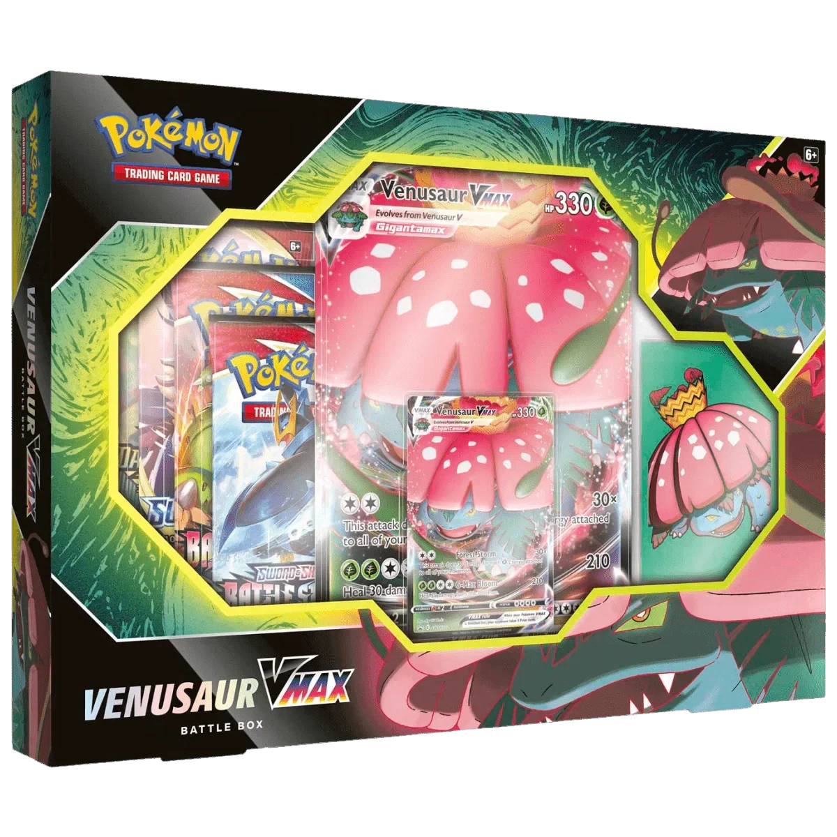 The Pokémon TCG: Venusaur VMAX Battle Box includes:
