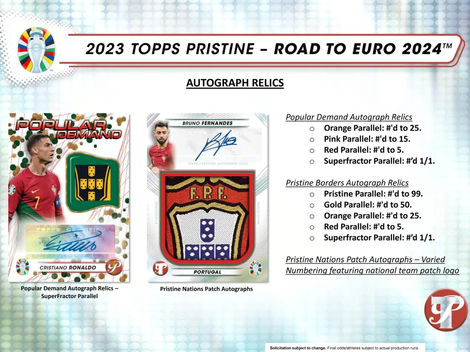 The revival of Topps Pristine continues! Topps is excited to announce the launch of Topps Pristine Road to Euro 2024 showcasing Europe’s flawless footballers on ultra modern and clean designs! Find 3 Autographs or Autograph Relics Per Box!