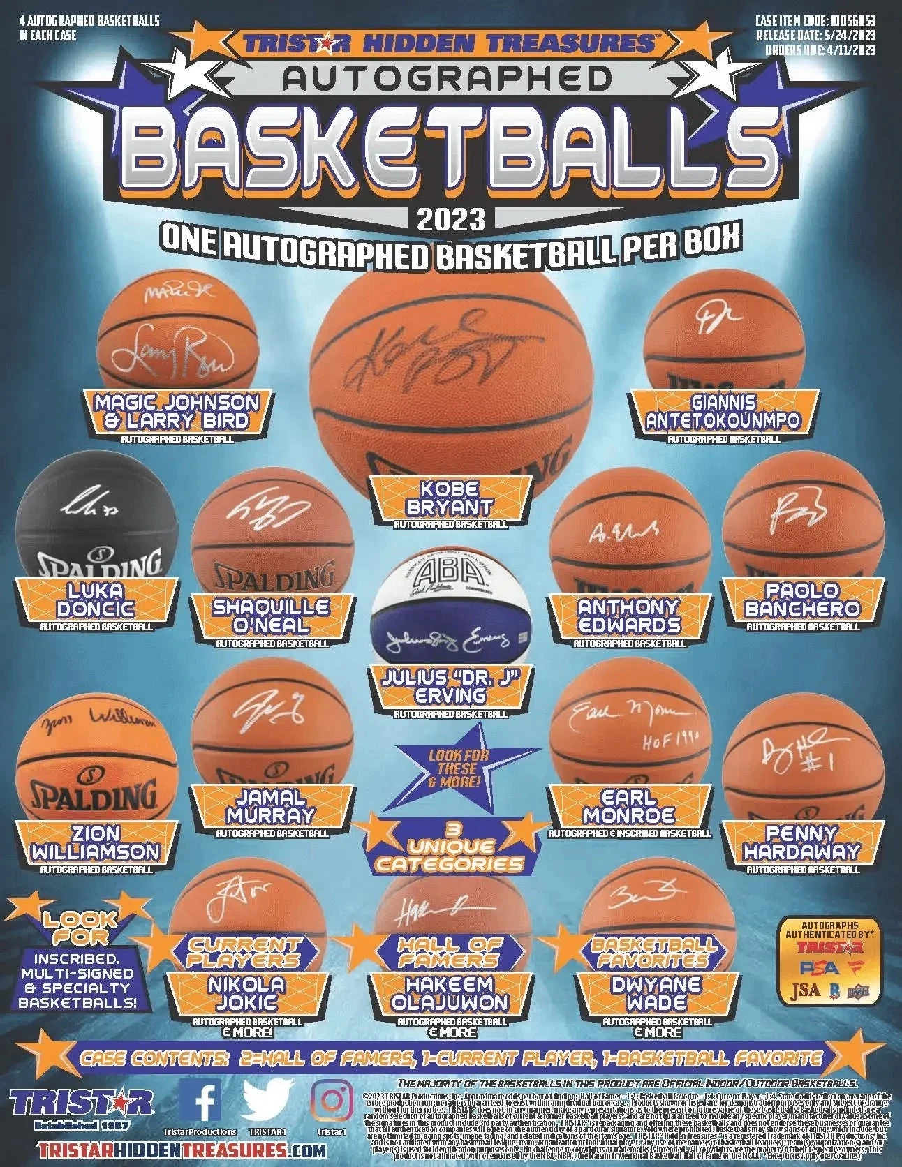 2023 TRISTAR Hidden Treasures Autographed Basketballs CASE GUARANTEES:
